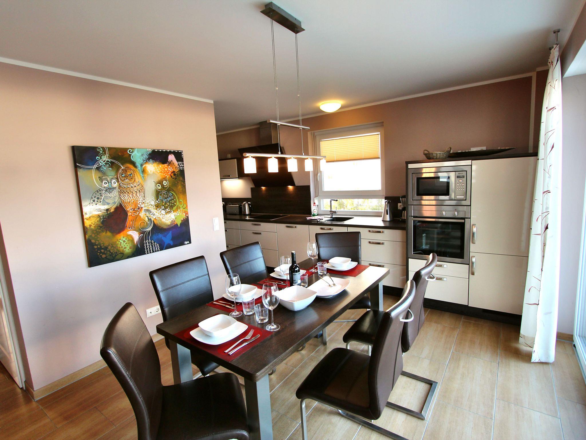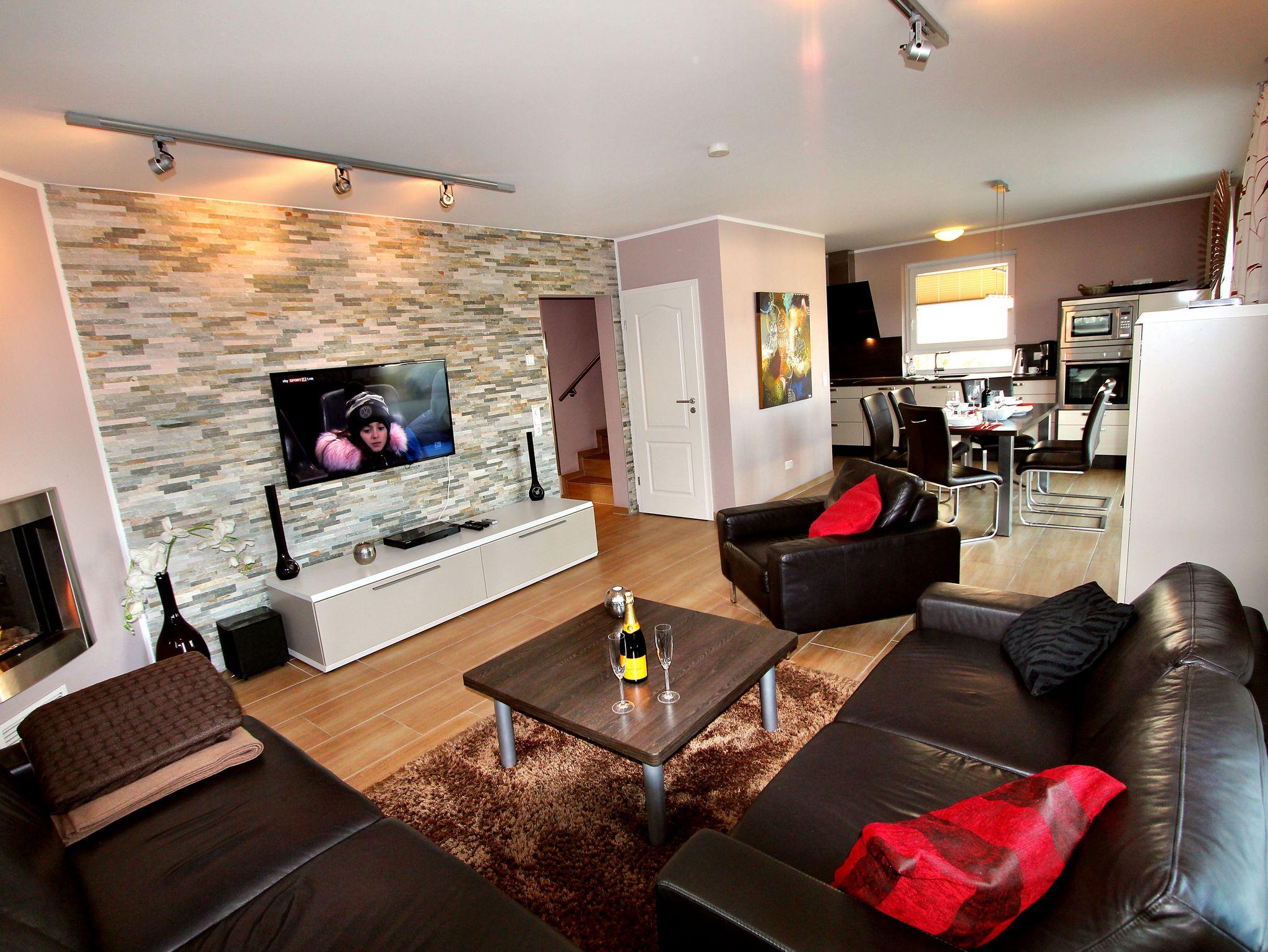 Die zwei Badezimmer sorgen für Komfort und Bequemlichkeit. Eines der Badezimmer ist mit einer einladenden Badewanne ausgestattet. Darüber hinaus steht Ihnen eine Sauna zur Verfügung, in der Sie sich wohltuend erholen können. Die drei Schlafzimmer bieten genügend Platz für Ihre Familie oder Ihre Gäste. Hier können Sie sich zurückziehen und erholsame Nächte verbringen. Der offene Wohn- und Essbereich schafft eine einladende Atmosphäre und verbindet das gemeinsame Kochen und Essen auf harmonische Weise. Der Gas Kamin sorgt für eine gemütliche und warme Stimmung, ideal für gesellige Abende und Entspannung.