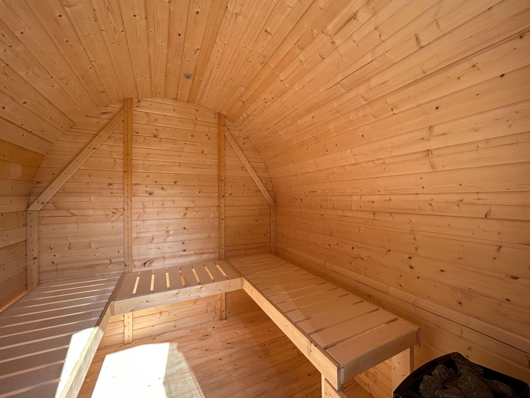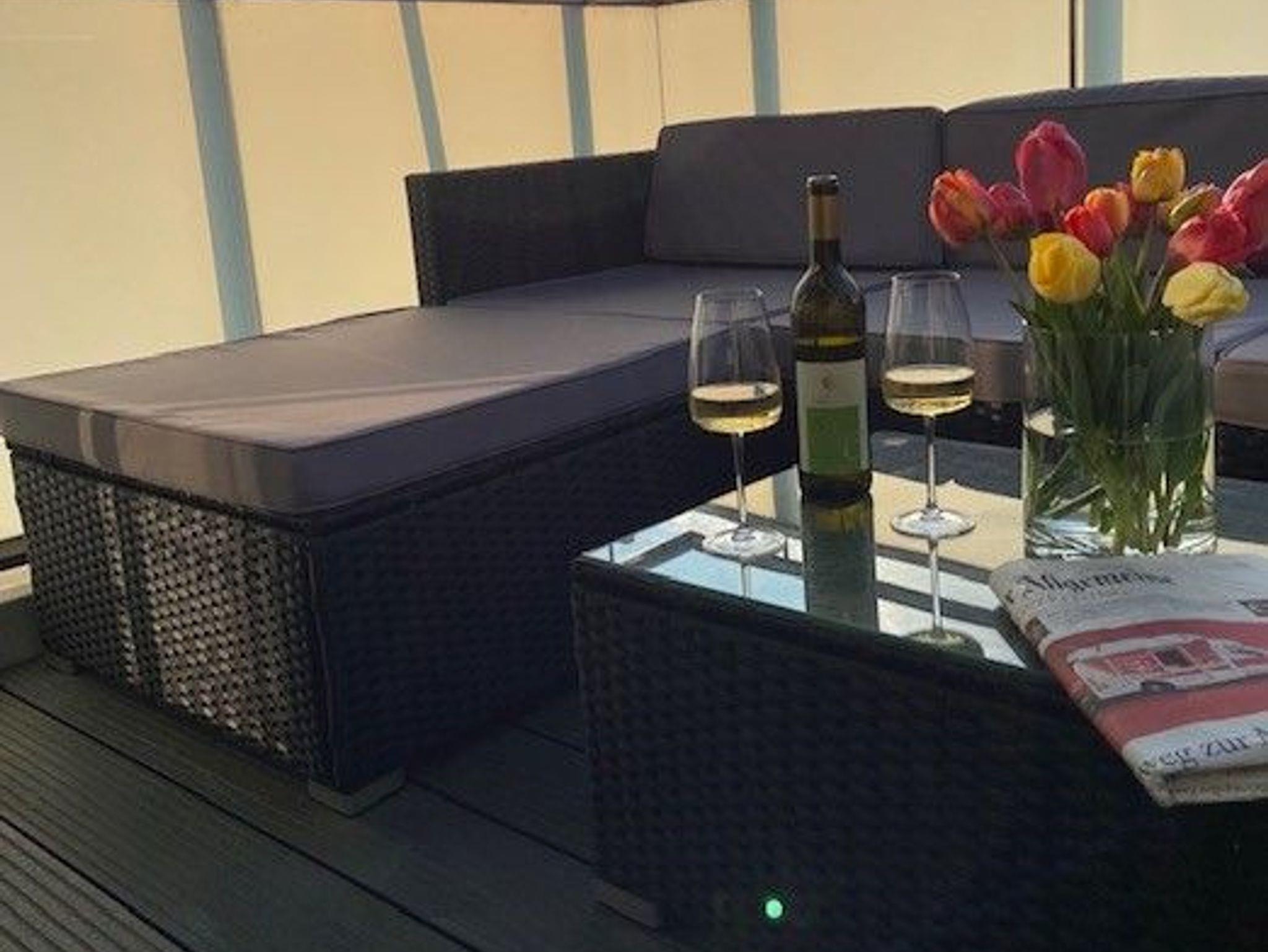 Während Sie auf dem Balkon mit oder ohne Sonnenschirm chillen können, stehen auf der Terrasse Sonnenliegen, ein Grill, Gartenmöbel und eine Außensauna zur Verfügung.