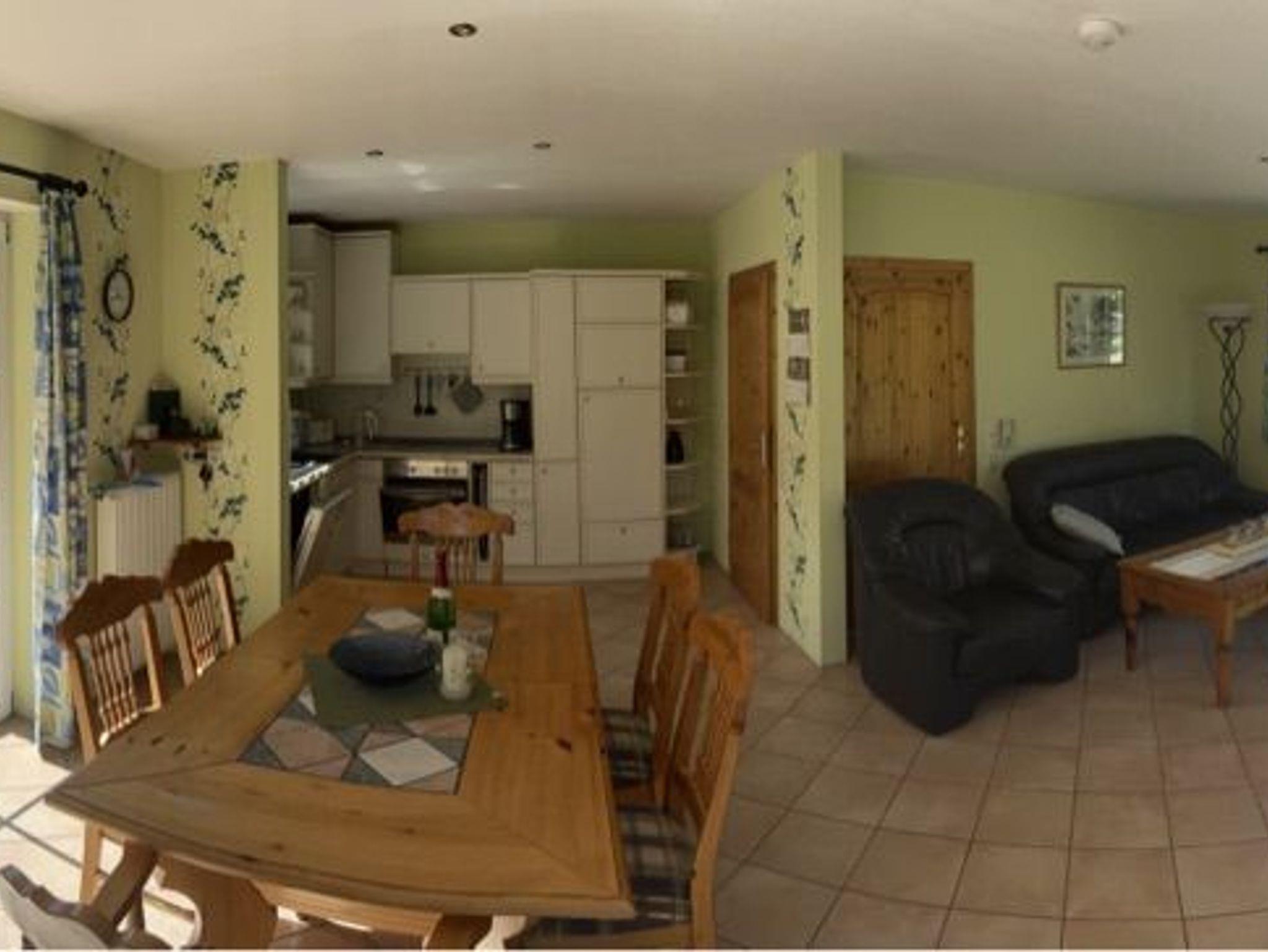 Fühlen Sie sich wie zuhause im Ferienhaus Heise! Nehmen Sie Platz in unserem gemütlichen Wohnbereich mit direktem Zugang zum Garten! Ein großzügiger, lichtdurchfluteter Raum mit gemütlicher Atmosphäre erwartet Sie. Vom Wohnbereich geht es in den Essbereich und in die Küche. Ein großer Esstisch lässt auch verregnete Urlaubstage mit Spielen und Essen im Nu vergehen. Für Kleinkinder steht ein Hochstuhl zur Verfügung. Die Küche selbst ist so komfortabel ausgestattet, dass unsere Gäste sich, wenn gewünscht, komplett selbst versorgen können. Neben Kochutensilien sind auch alle wichtigen Elektrogeräte vorhanden. Wichtig für Familien: unser Ferienhaus verfügt über eine Waschmaschine und einen Trockner sowie einen Wäscheständer - im Sommer trocknet die Wäsche im frischen Wind im Nu! Übrigens: unsere Baby- bzw. Kleinkinderausstattung, zu der auch ein Bollerwagen und etwas Spielzeug gehört, steht Ihnen ohne Aufpreis zur Verfügung!