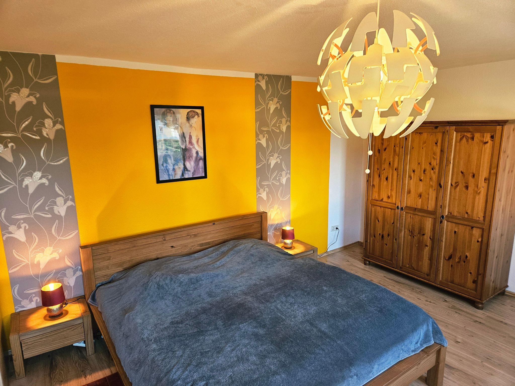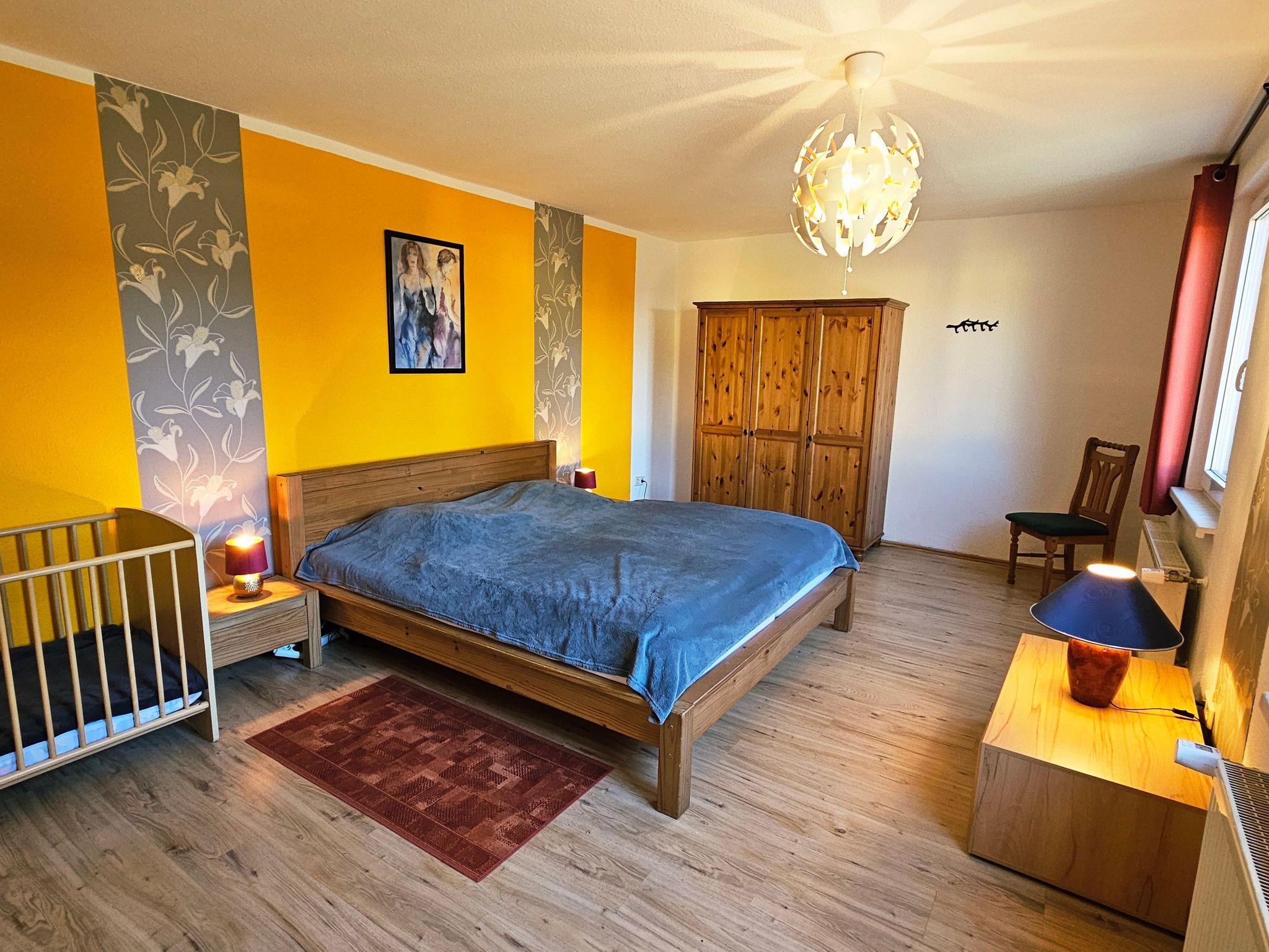 - oranges Zimmer im EG mit 1 Doppelbett (180x200cm) & 1 Babybett (60x120cm, bis 3 Jahre)