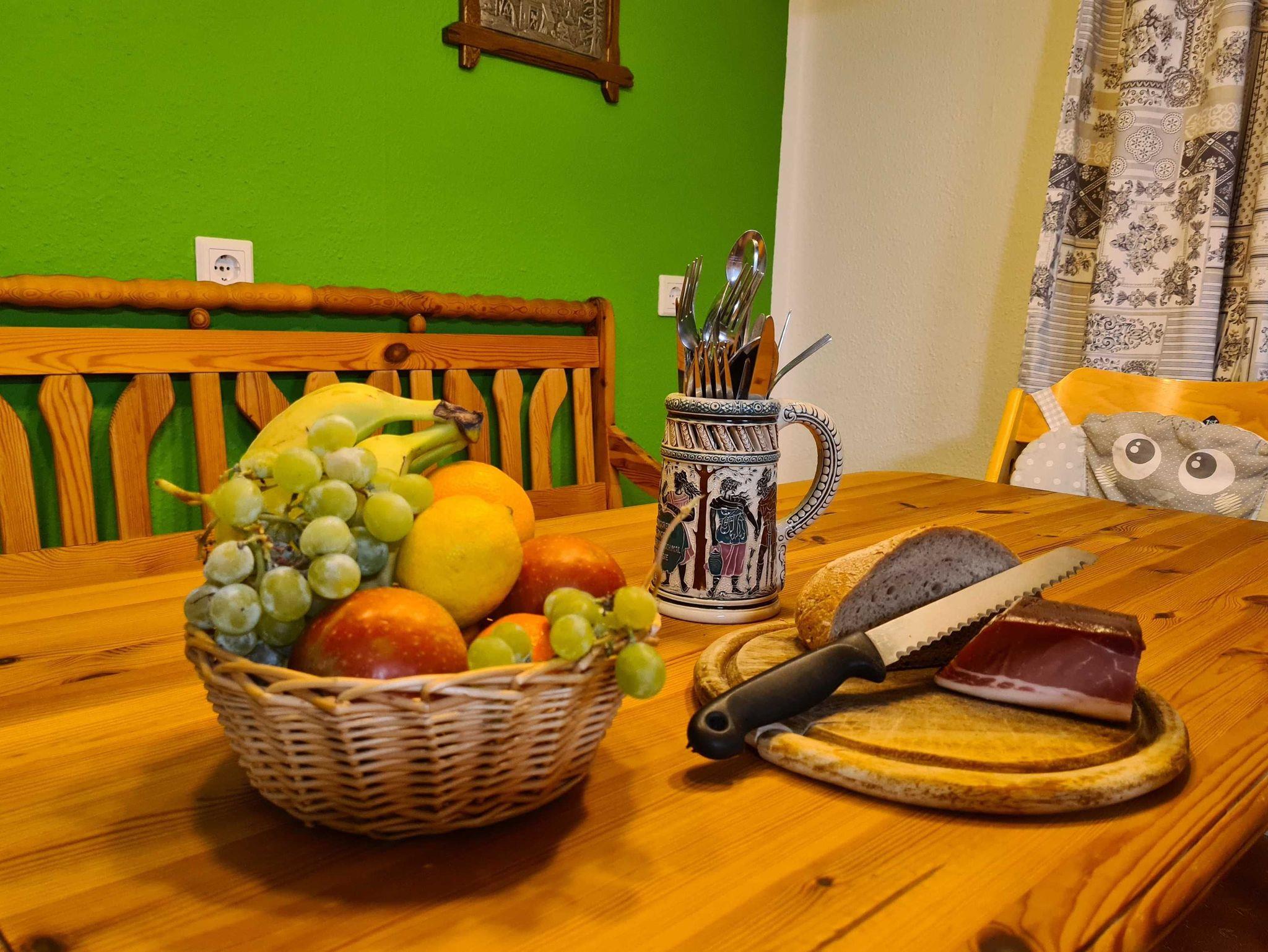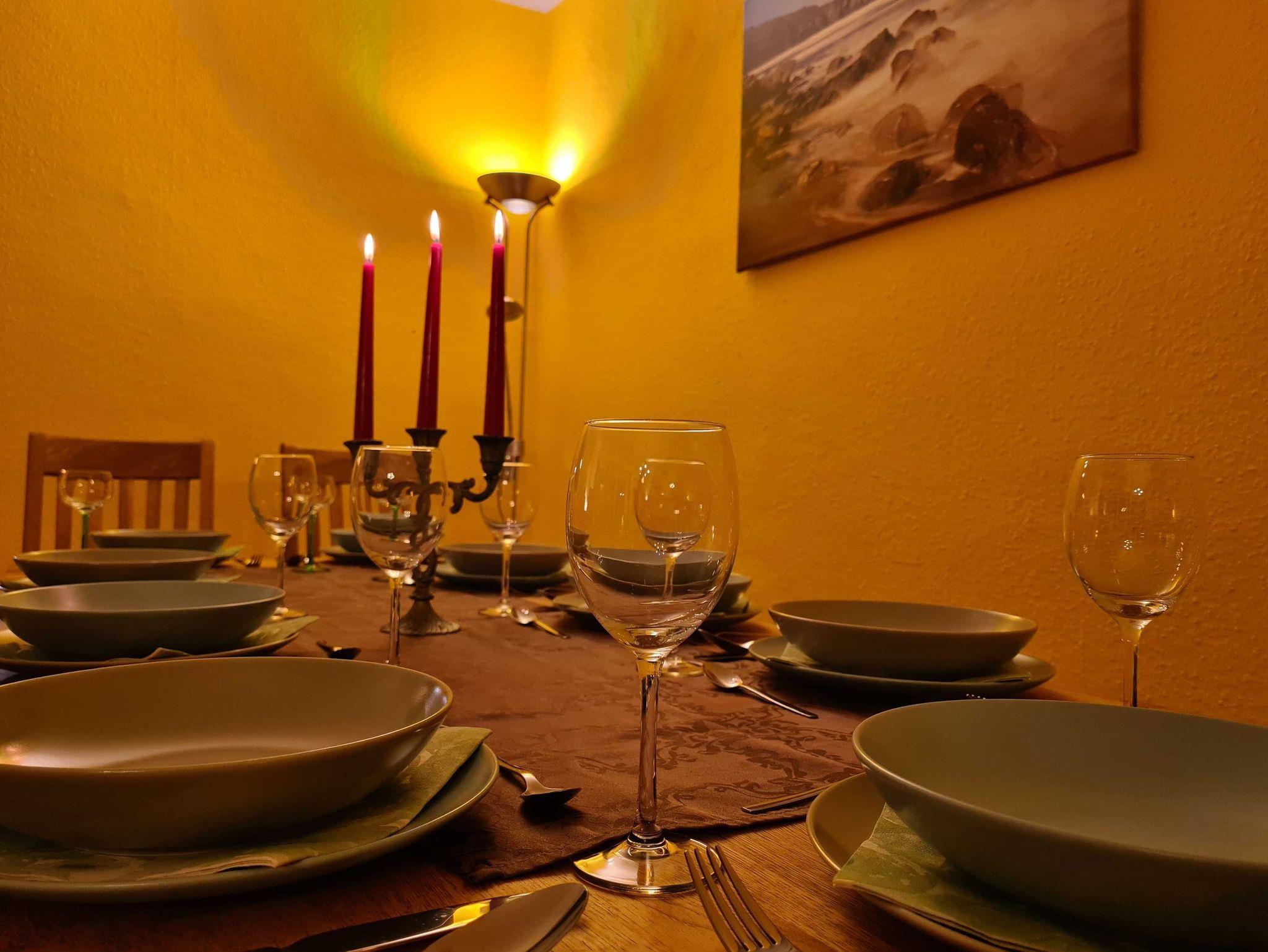 Zur Ausstattung gehören zudem kostenfreies WLAN (mit schnellem Glasfaseranschluss), eine Handtuchheizung, Waschmaschine, Fön, Spülmaschine, ein Backofen mit Induktions-Kochfeld & Dunstabzugshaube, Mikrowelle, ein Kühlschrank & ein Tiefkühlschrank, Toaster, Kaffeemaschine, Wasserkocher, Mixer, hochwertiges Geschirr & Kochutensilien, 2 Esstische, Verdunklungsvorhänge an allen Fenstern, Kuscheldecken & -kissen, Insektenschutzgaze in allen Räumen, ein Staubsauger, eine Spieleauswahl & ein Büchertauschregal.