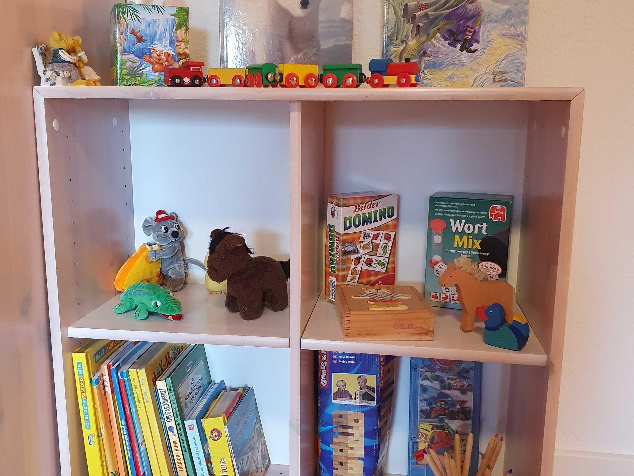 Für unsere kleinsten Gäste gibt es 2 Hochstühle (davon 1 mit Tisch), eine Wickelkommode im oberen Bad, ein zusätzliches Babybett (bis 3 Jahre, nicht auf die max. 9 Personen & den Preis angerechnet), Kindergeschirr, Spielzeug in Haus & Garten, eine Kindersitzbank im Flur & einen Bollerwagen, mit dem man sorgenfrei am Waldrand entlang alle Sachen zum 2 Minuten entfernten Strand transportieren kann.