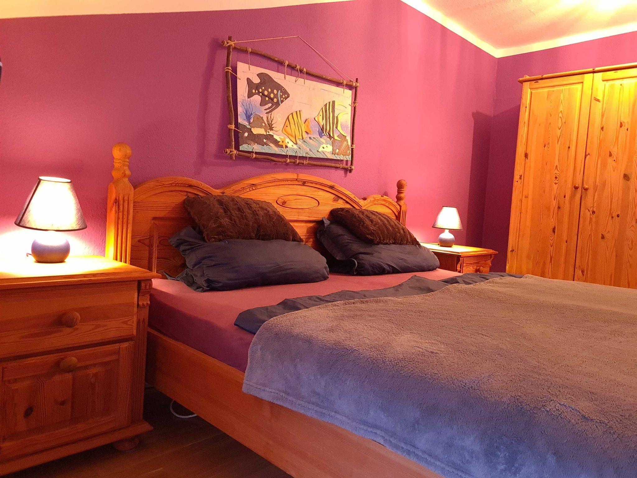 - lila Zimmer im OG mit 1 Doppelbett (180x200cm)