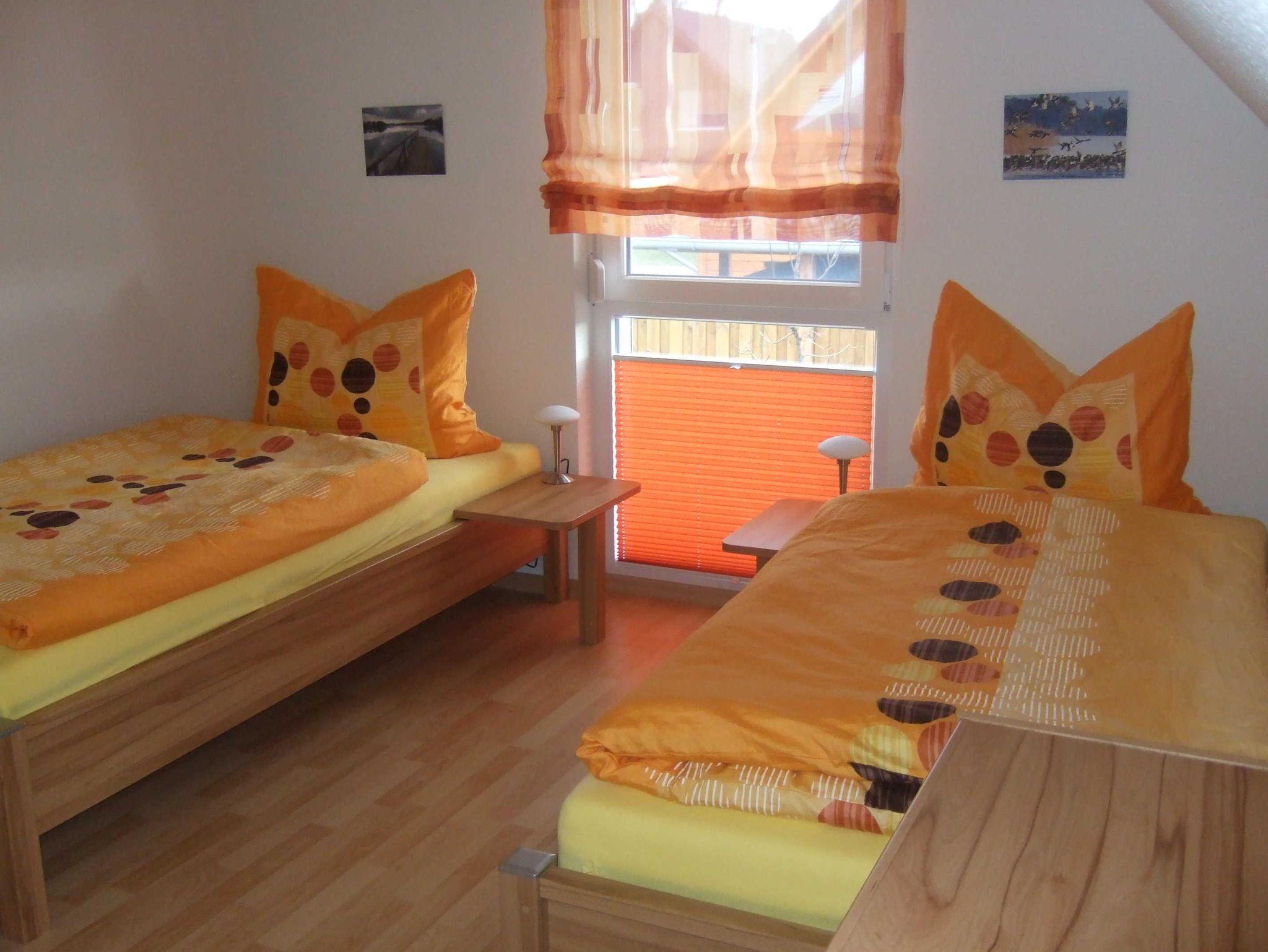 Ein Schlafzimmer ist mit einem Doppelbett ausgestattet, in den beiden anderen stehen jeweils 2 Einzelbetten.