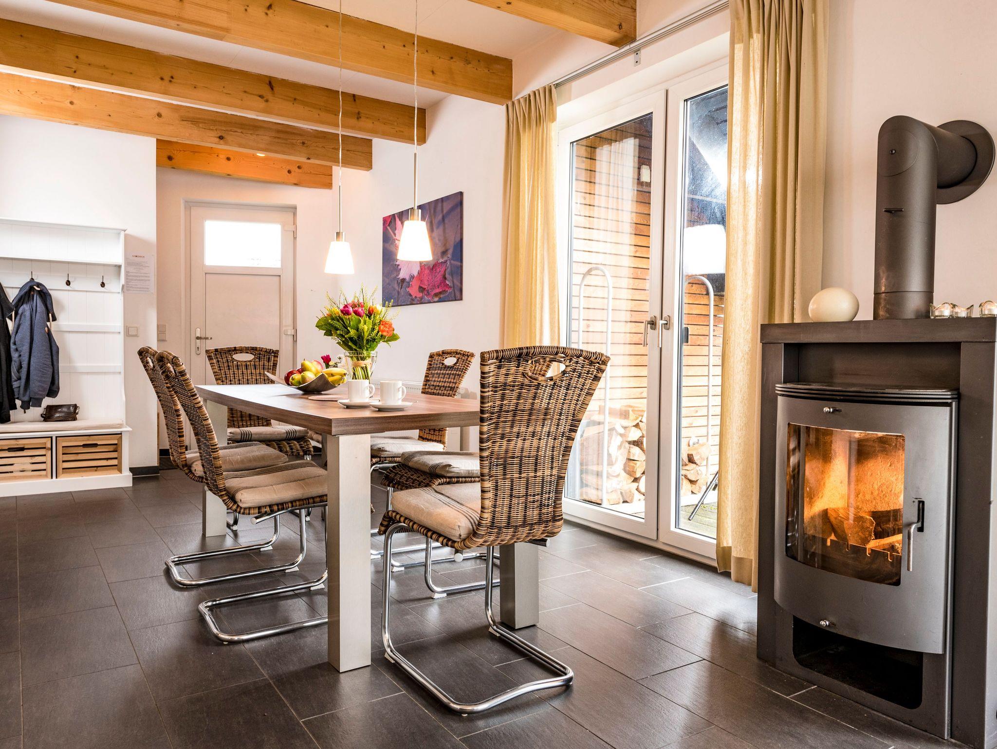 Das Haus verfügt über einen offenen Wohn- und Essbereich, der einladend gestaltet ist und viel Platz für gesellige Stunden bietet. Die moderne Küche ist in den Wohnbereich integriert.
