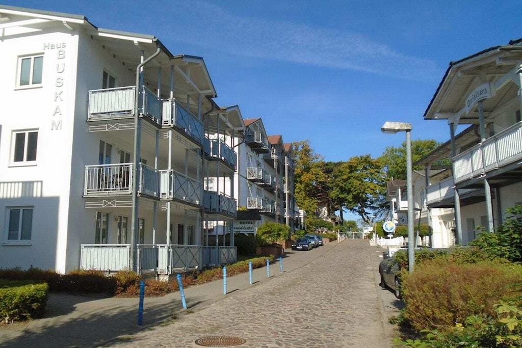 Die Villa Buskam mit insgesamt zwölf Ferienwohnungen liegt in einer Nebenstraße des Ostseebades Göhren. Ruhig und zentral, kein Durchgangsverkehr. Der Parkplatz befindet sich ca. 200m entfernt. Zum Be- und Entladen Ihres PKW können Sie direkt am Haus vorfahren. Der Parkplatz ist für Sie selbstverständlich kostenfrei.
