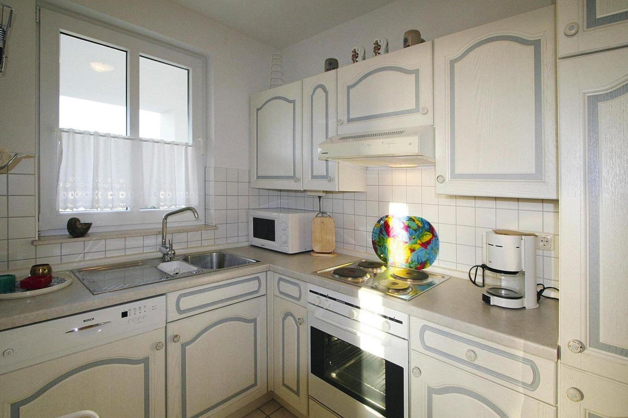 Offene Küche(Esstisch, Wasserkocher, Toaster, Kaffeemaschine, Backofen, Spülmaschine, Kühl-/Gefrierkombination), Wohn/Esszimmer(Doppelschlafcouch, TV(Satellit)), Schlafzimmer(Doppelbett), Badezimmer(Dusche, Waschbecken, Toilette), Balkon oder Terrasse, Fahrradabstellraum(Gemeinschaftliche Nutzung mit anderen Gästen), Gartenmöbel, Parkplatz, Hochstuhl, Babybett (kostenpflichtig), Handtücher/Bettwäsche (extra Gebühr)