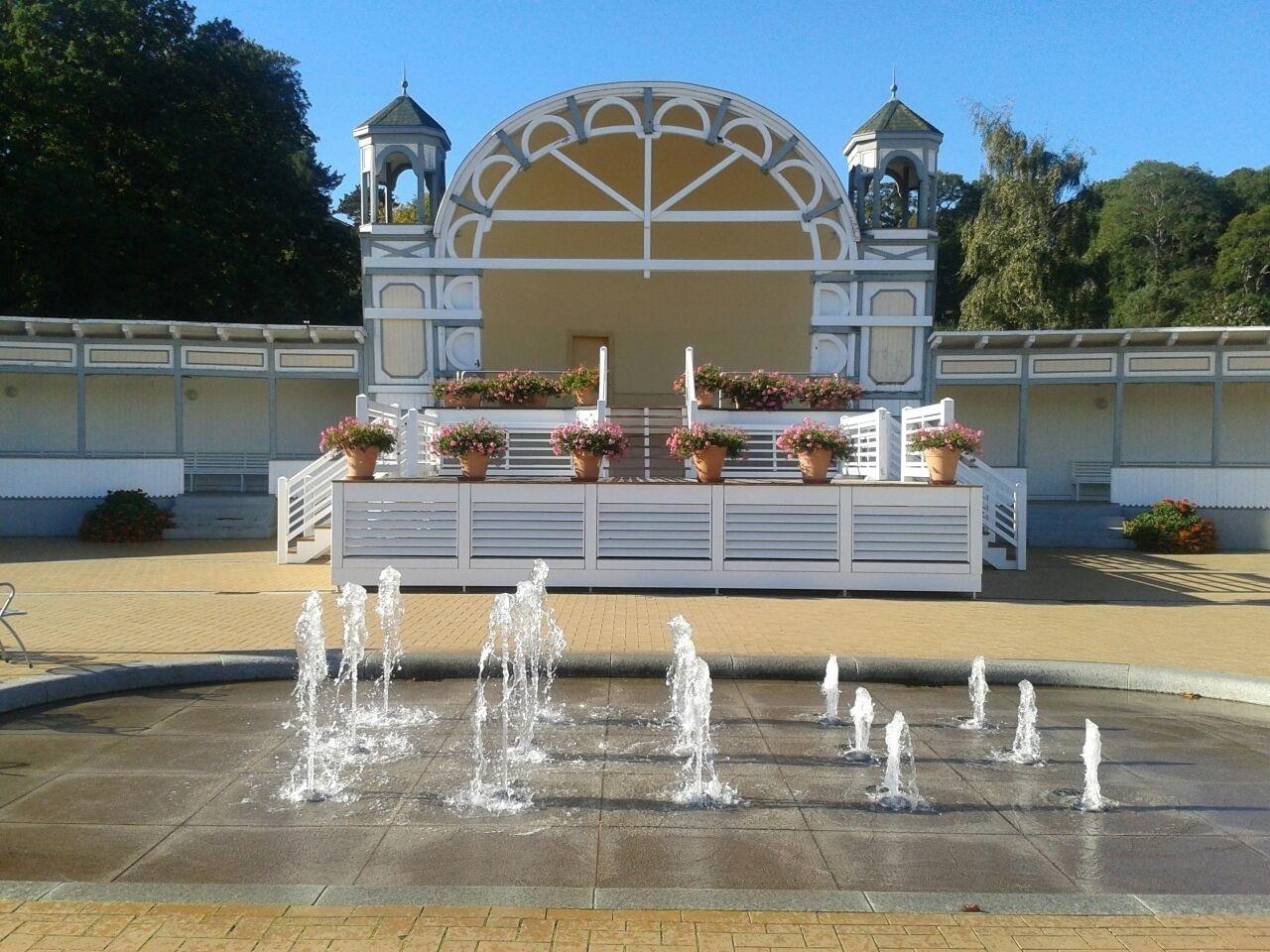 An der Seebrücke liegt auch der schöne Kurpark des Ostseebades mit Wasserspielen, einem Kneipp Becken und der "Kurmuschel", wo in den Sommermonaten regelmäßig Konzerte stattfinden. Im Kurpark beginnt auch die Bernsteinpromenade, die entlang des Göhrener Nordstrandes über Baabe bis zum Ostseebad Sellin reicht.