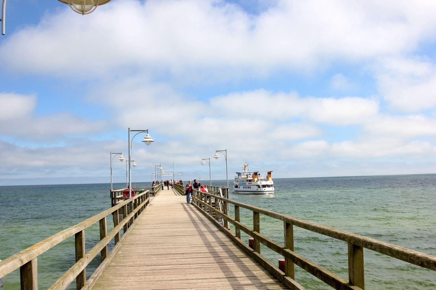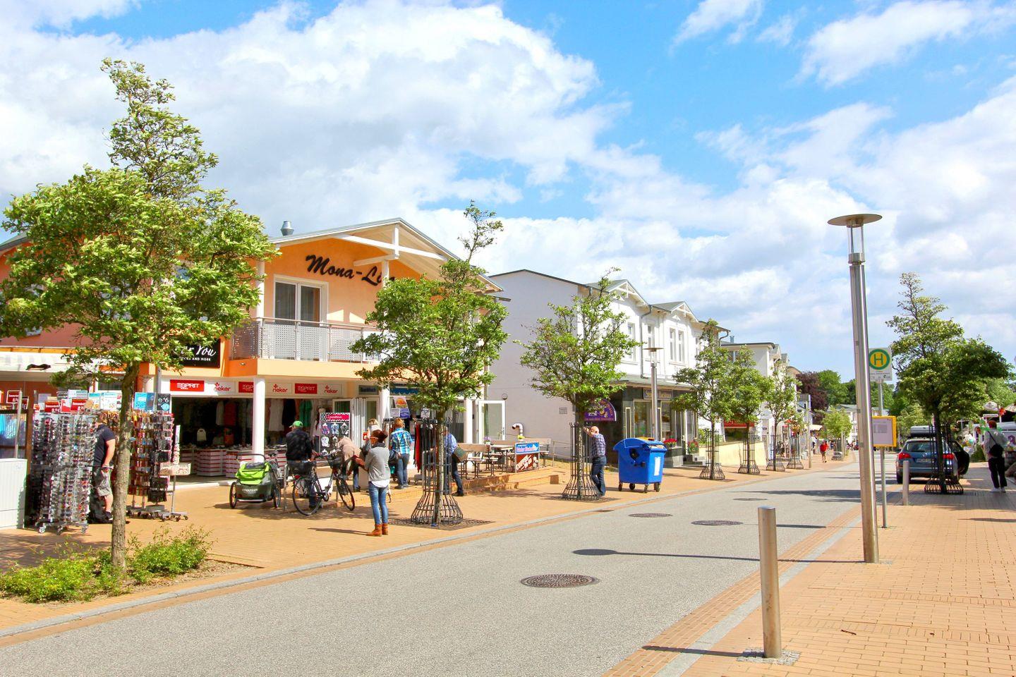 Der lange, feinsandige Nordstrand mit der Seebrücke sowie einer langen, romantischen Promenade, die bis zum nächsten Ostseebad Baabe führt, ist nach ca. 350 m Fußweg bequem erreicht.