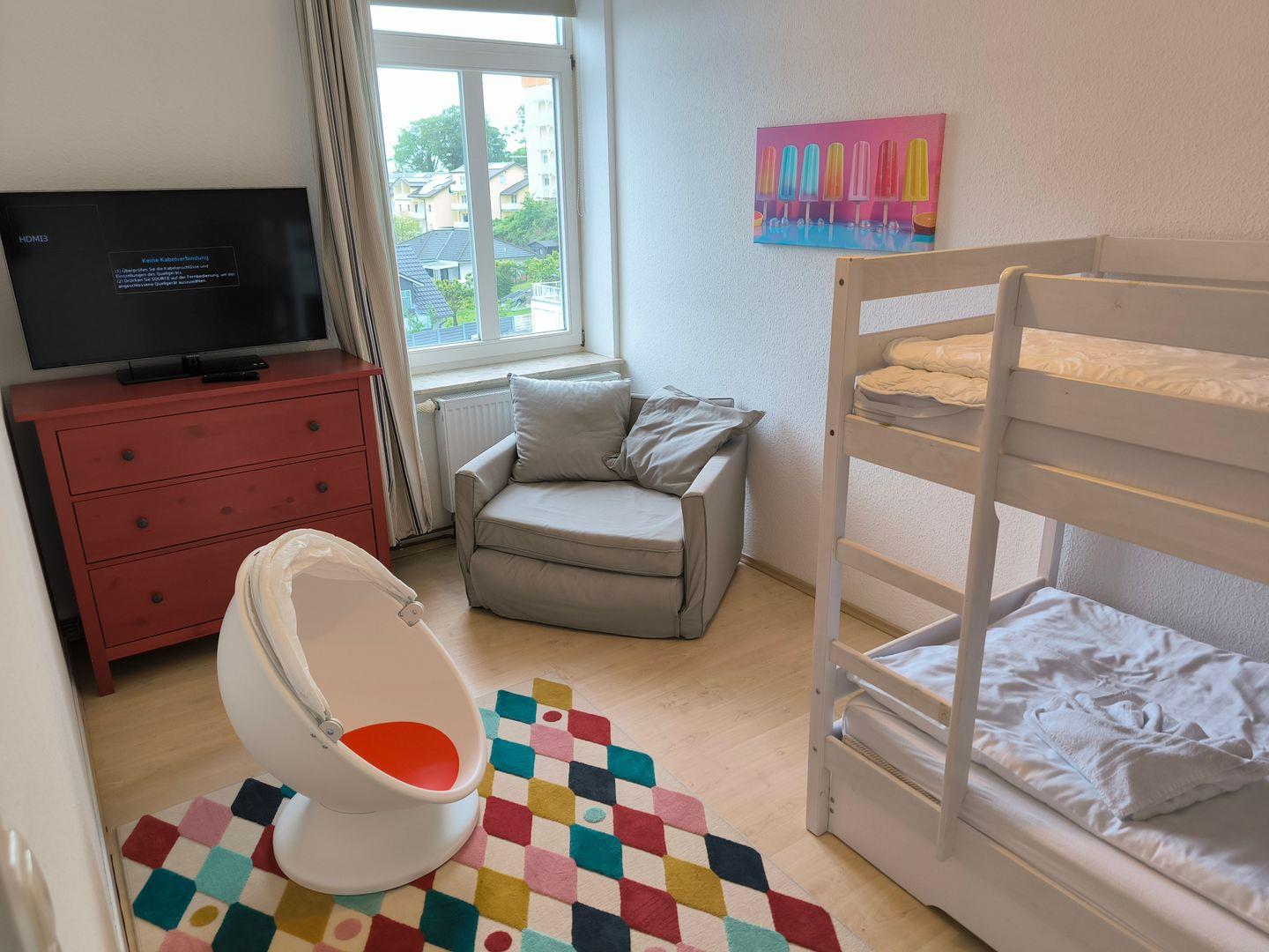2. Schlafzimmer mit Etagenbett, Flat-TV, Kommode, Sessel,