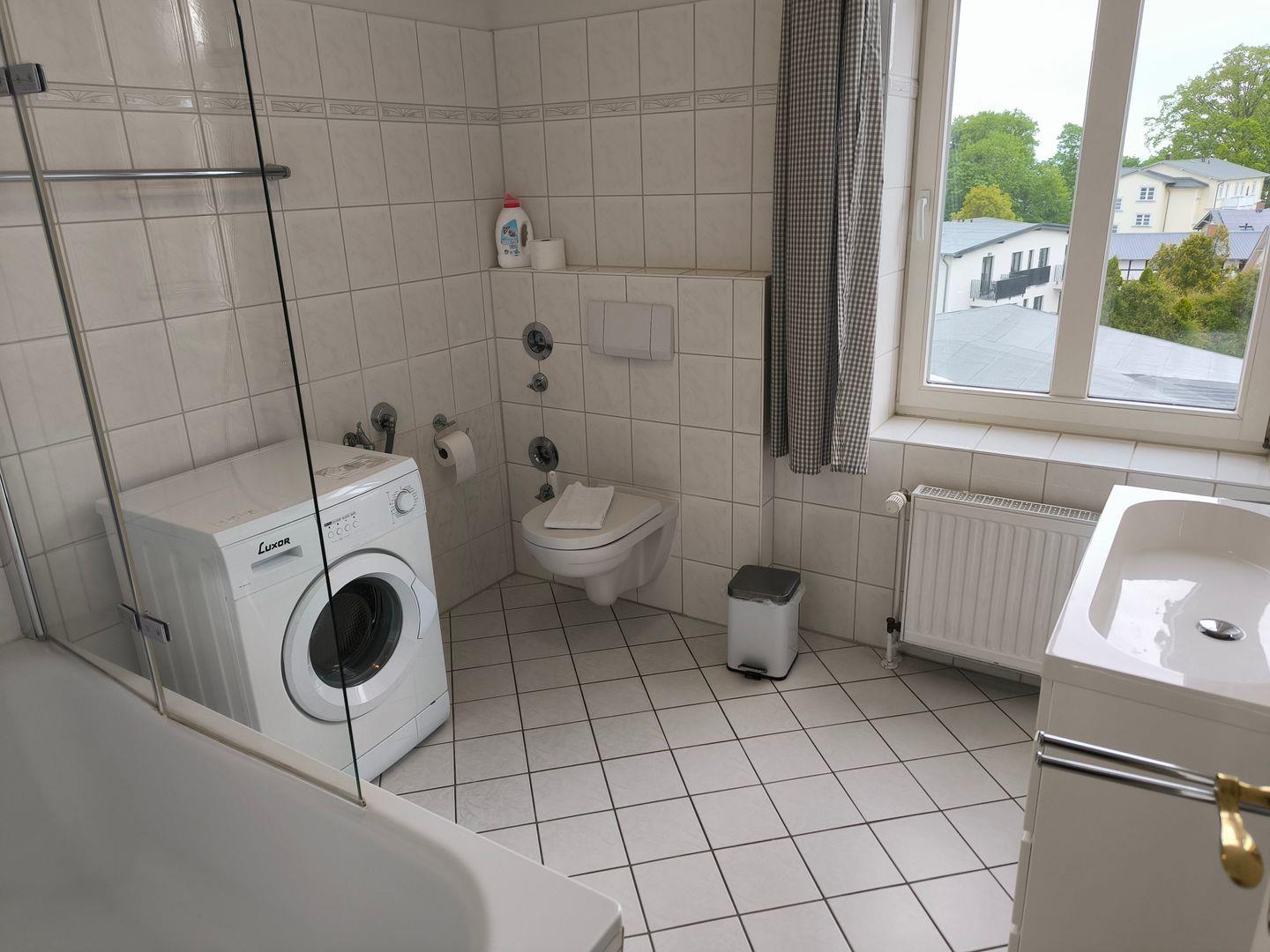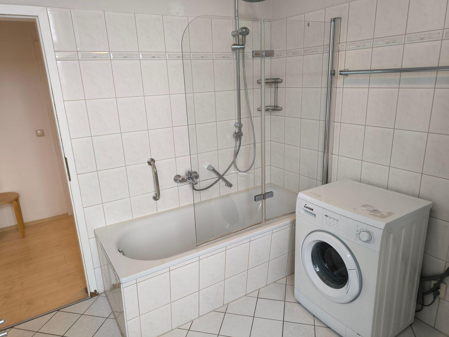 Bad mit Badewanne mit Duschfunktion, WC und Föhn