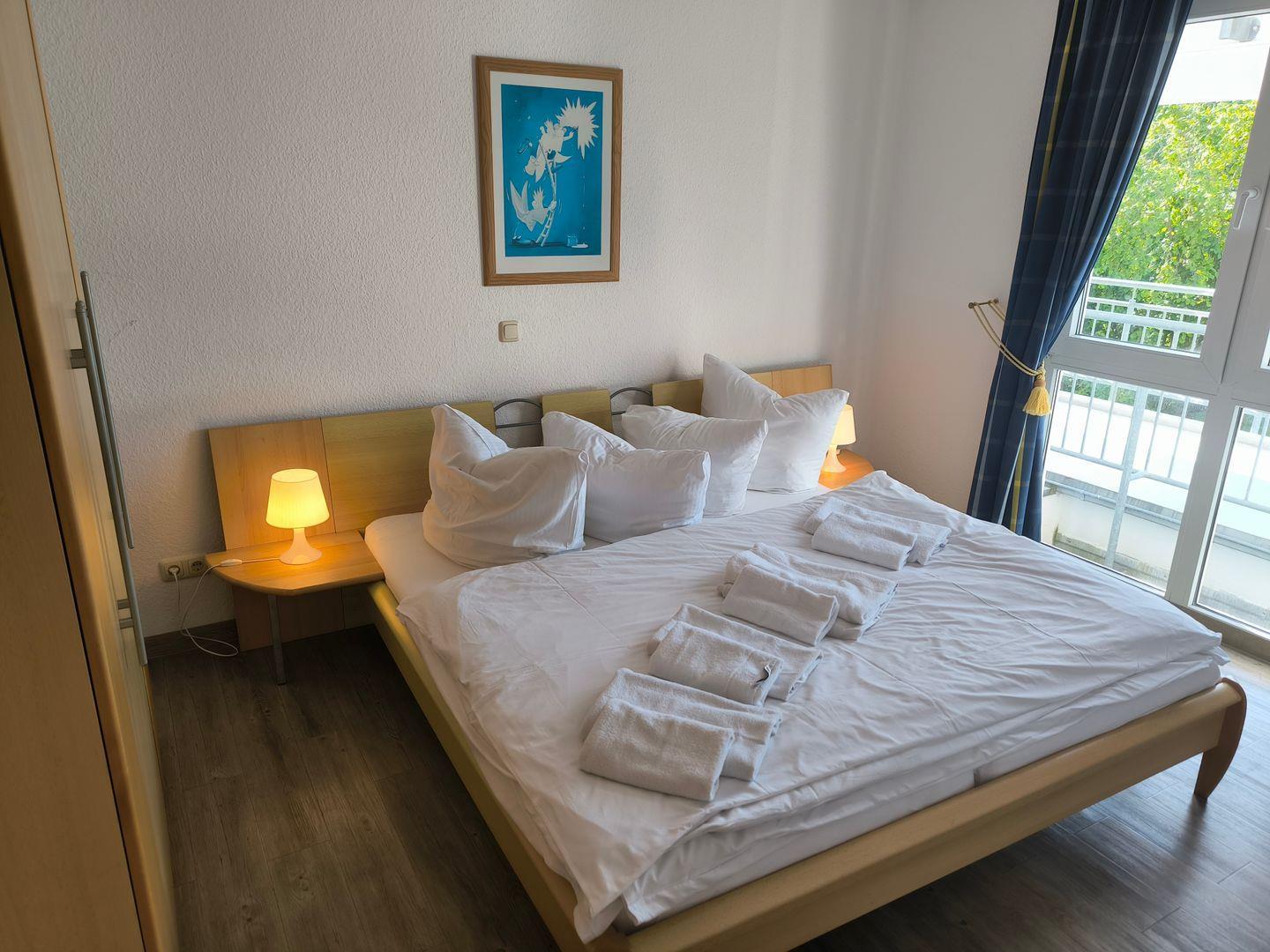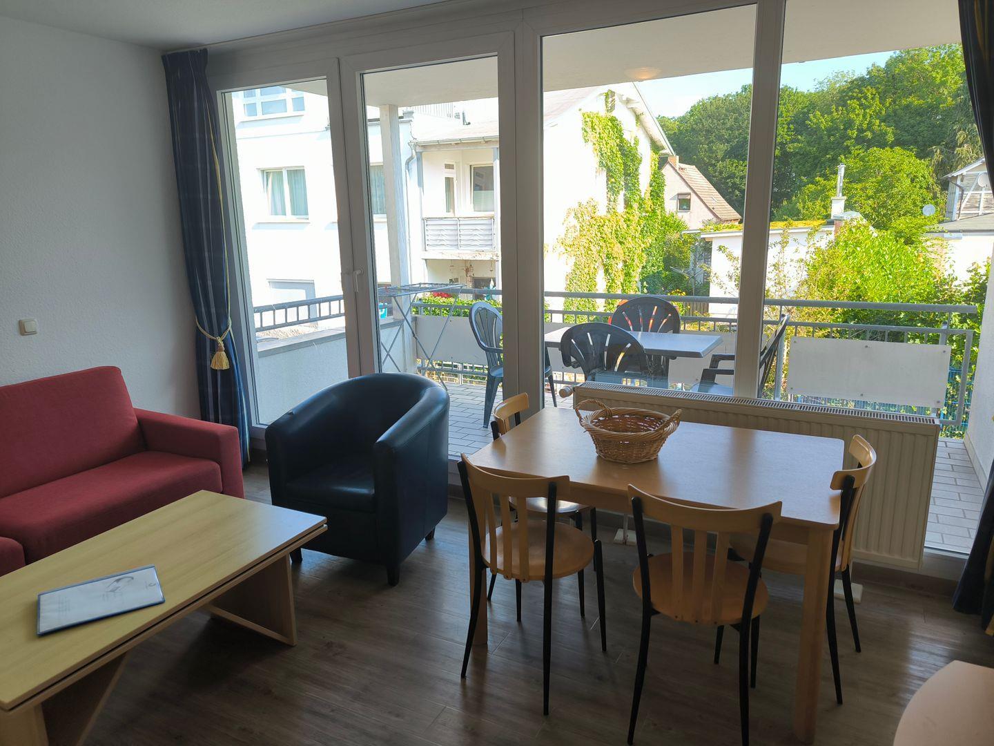 Besondere Highlights dieser Unterkunft sind der eigene Balkon, auf dem Sie morgens bei einem Kaffee oder abends beim Sonnenuntergang entspannen können. Der Bodenbelag in Wohn- und Schlafzimmer aus Vinyl sorgt dabei für ein modernes und pflegeleichtes Wohnambiente.