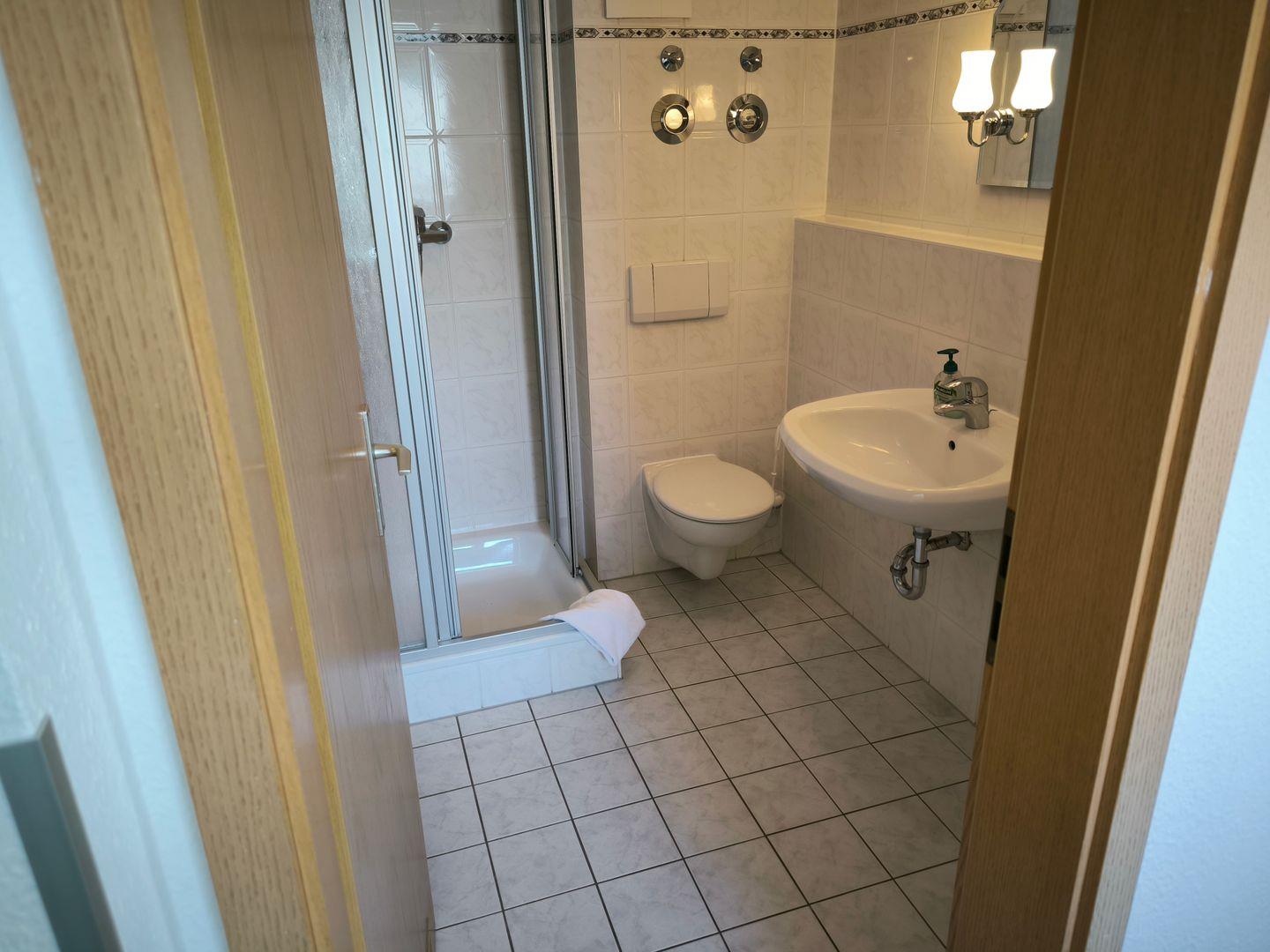 Bad mit Dusche, WC und Föhn
