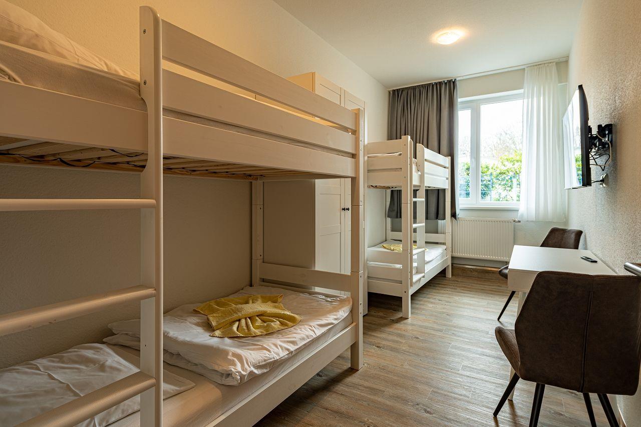 Schlafzimmer mit 2 Etagenbetten (90 x 200 cm ), Großem Kleiderschrank, Schreibtisch und Flachbild Fernseher