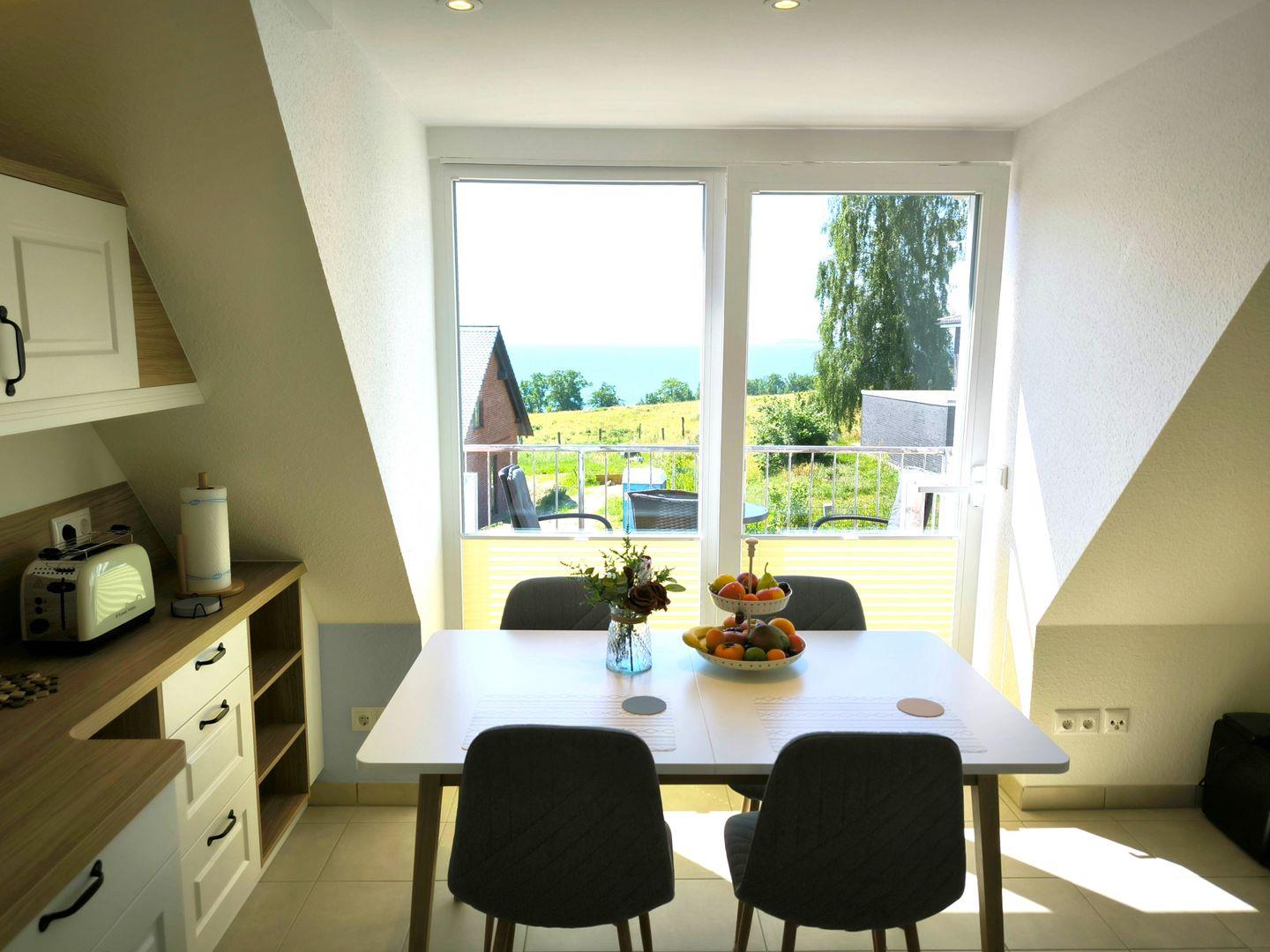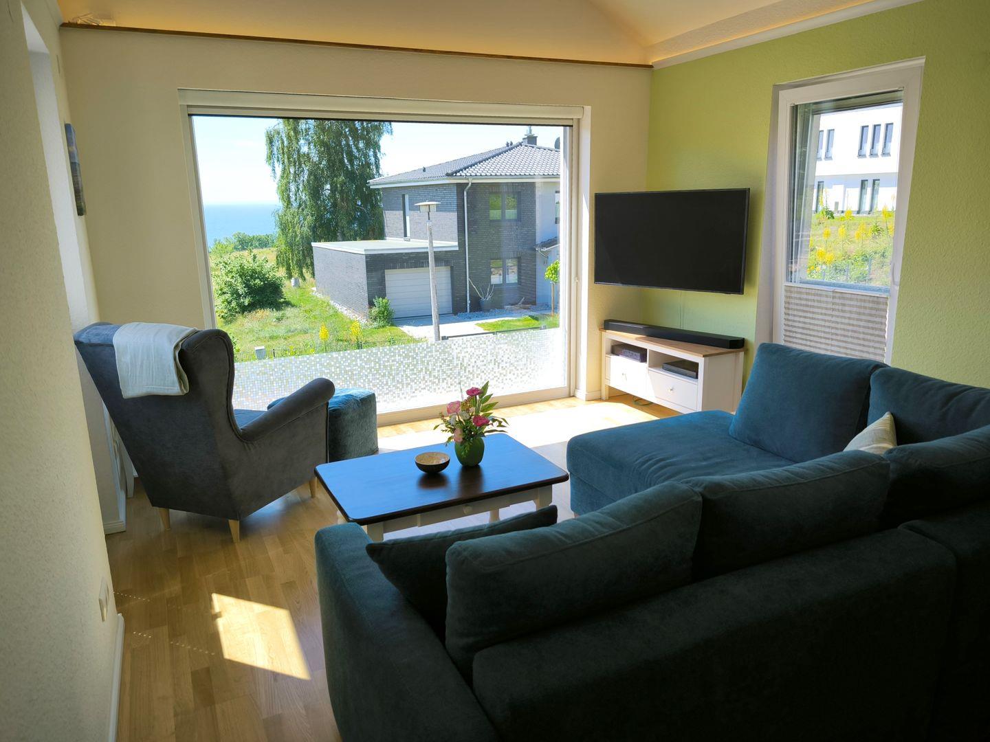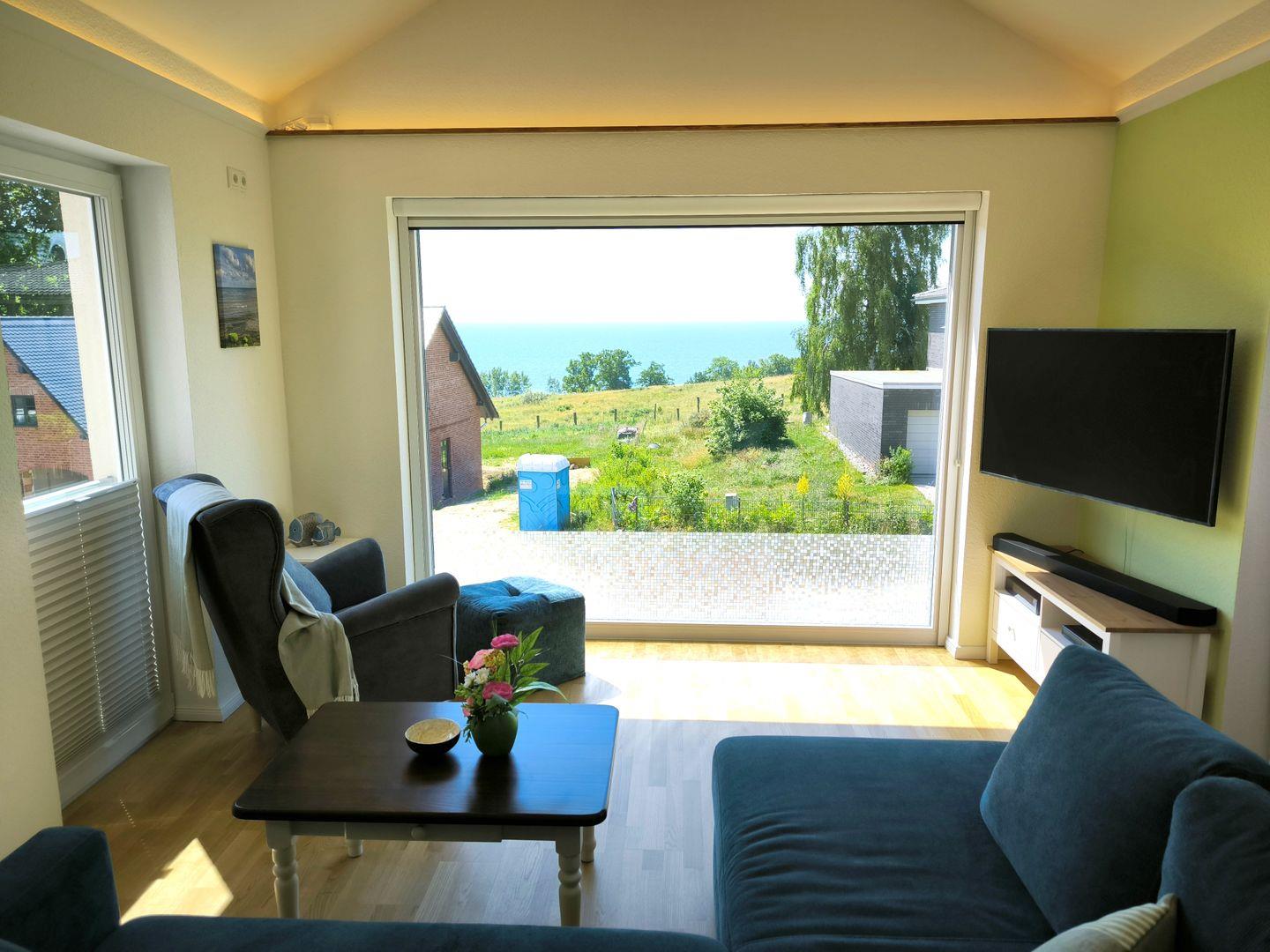 Entdecken Sie die exklusive Dachgeschosswohnung MeerSinn mit Panorama-Meerblick, Sauna und moderner Ausstattung in Göhren.