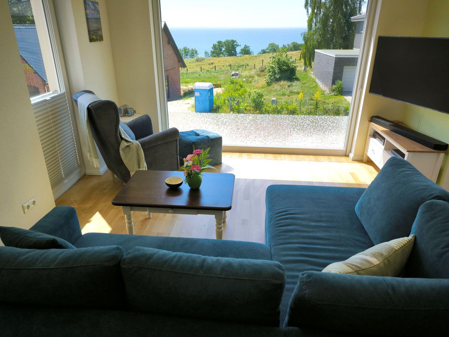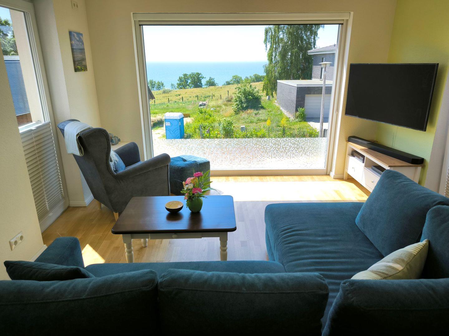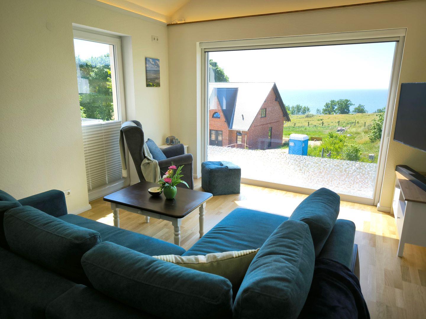 Entdecken Sie die exklusive Dachgeschosswohnung MeerSinn mit Panorama-Meerblick, Sauna und moderner Ausstattung in Göhren.