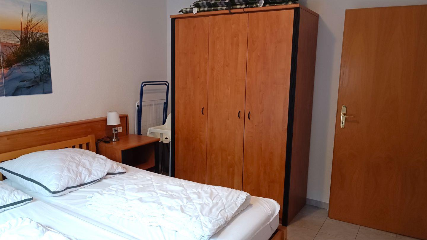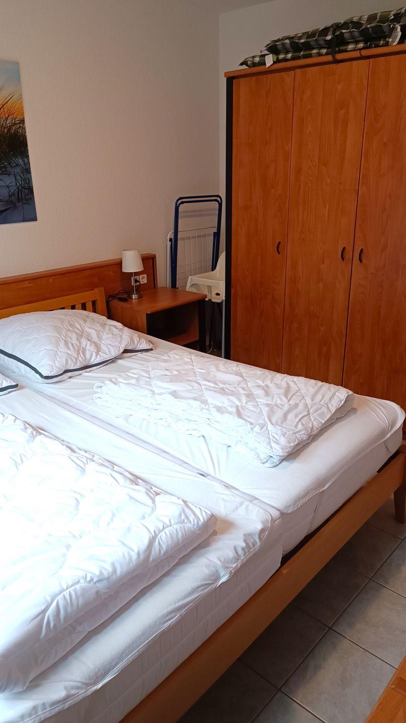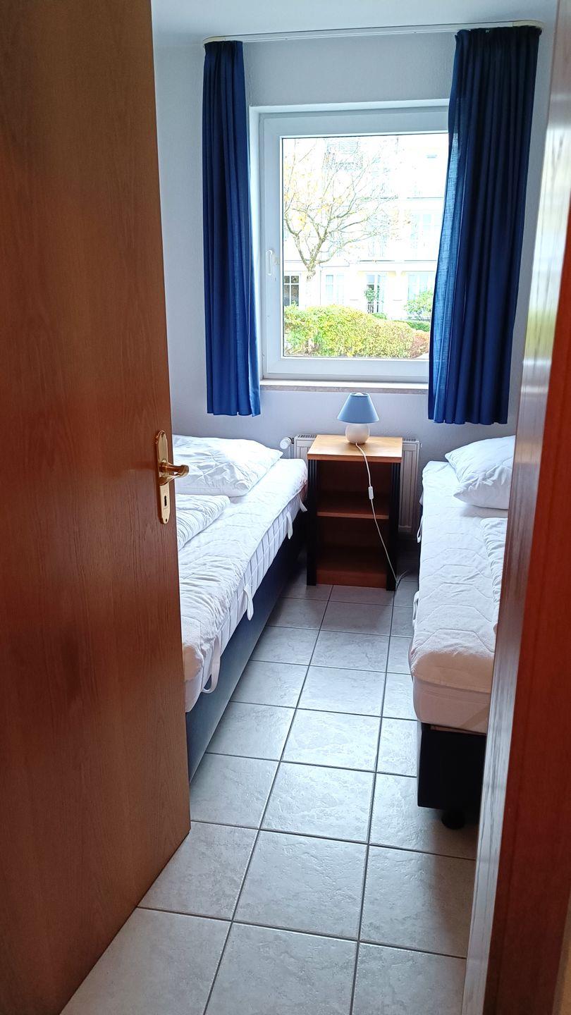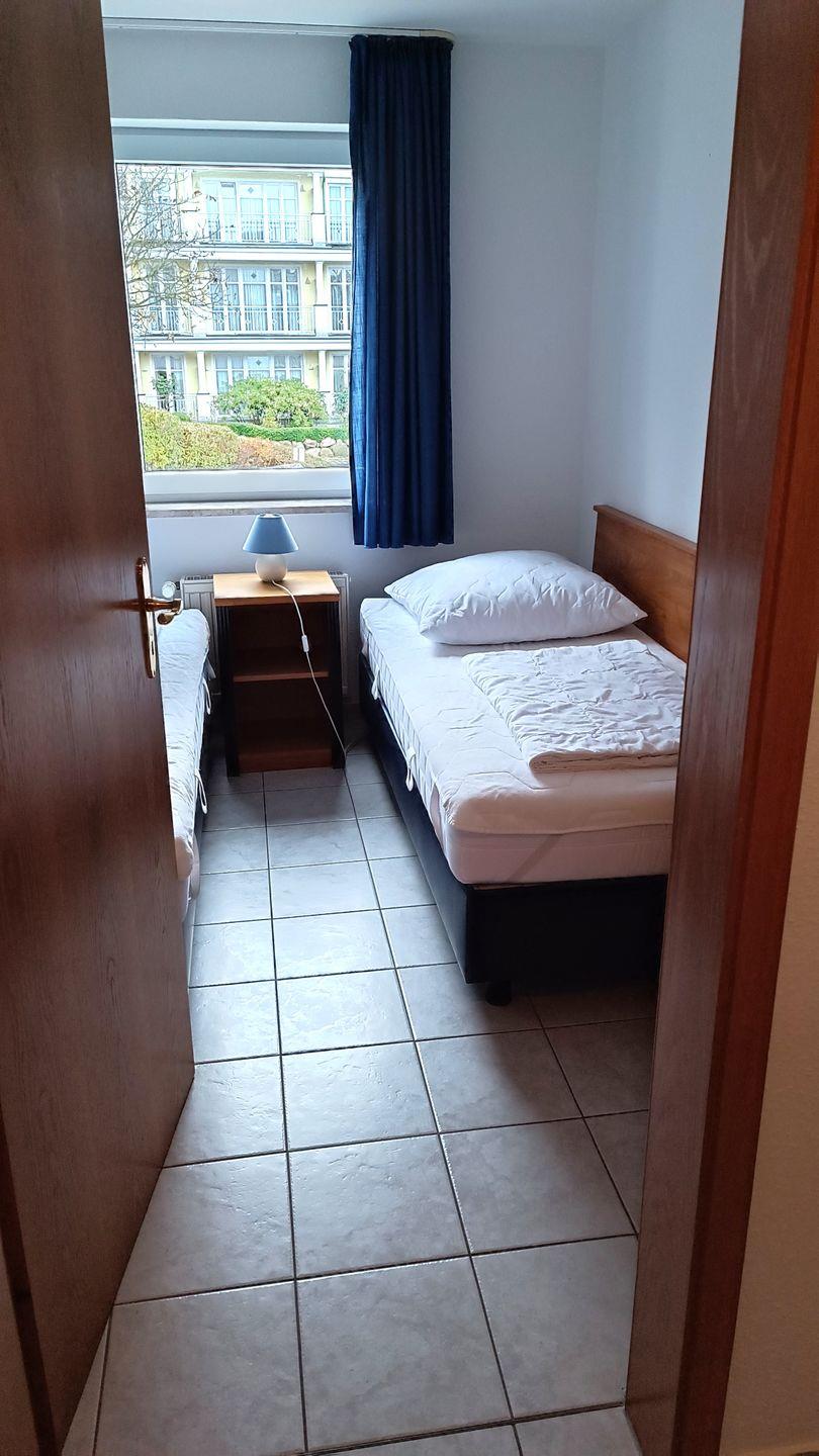 2. Schlafzimmer mit 2 getrennt stehenden Betten und 2 kleinen Kleiderschränken