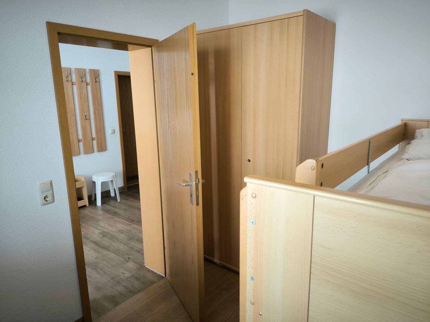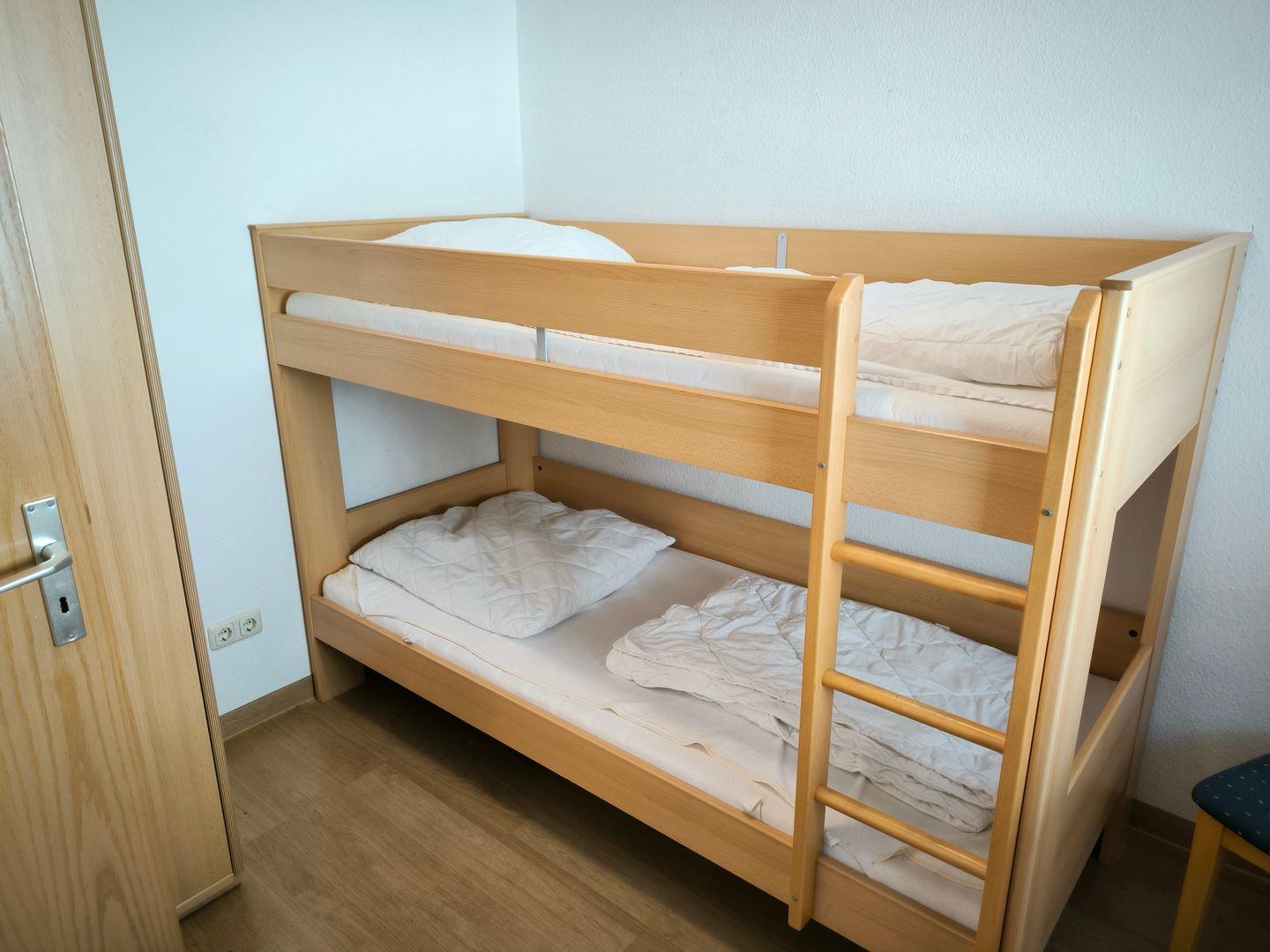 Schlafzimmer mit Etagenbett (Liegefläche 90 x 200 cm) und kleinem Kleiderschrank