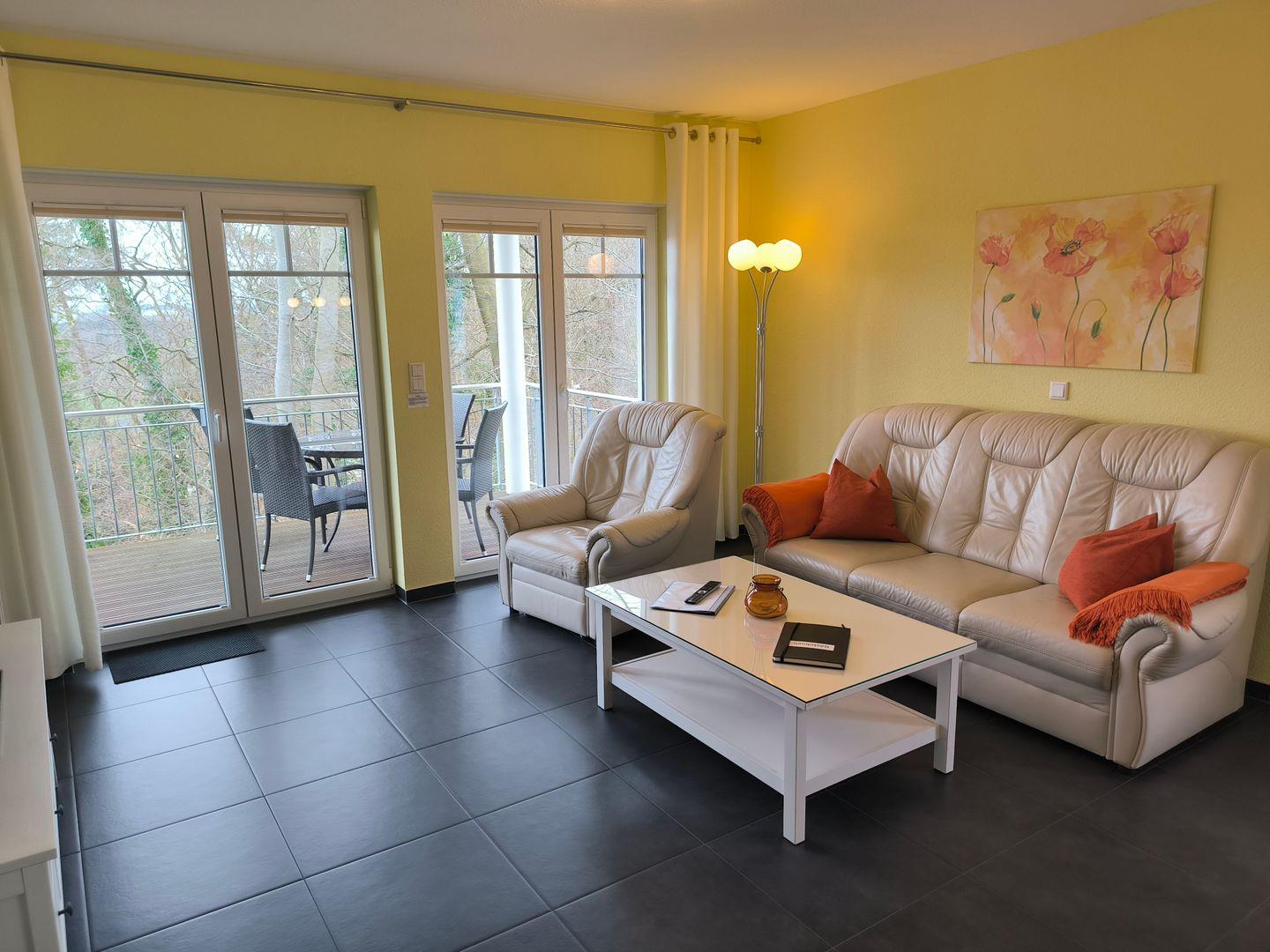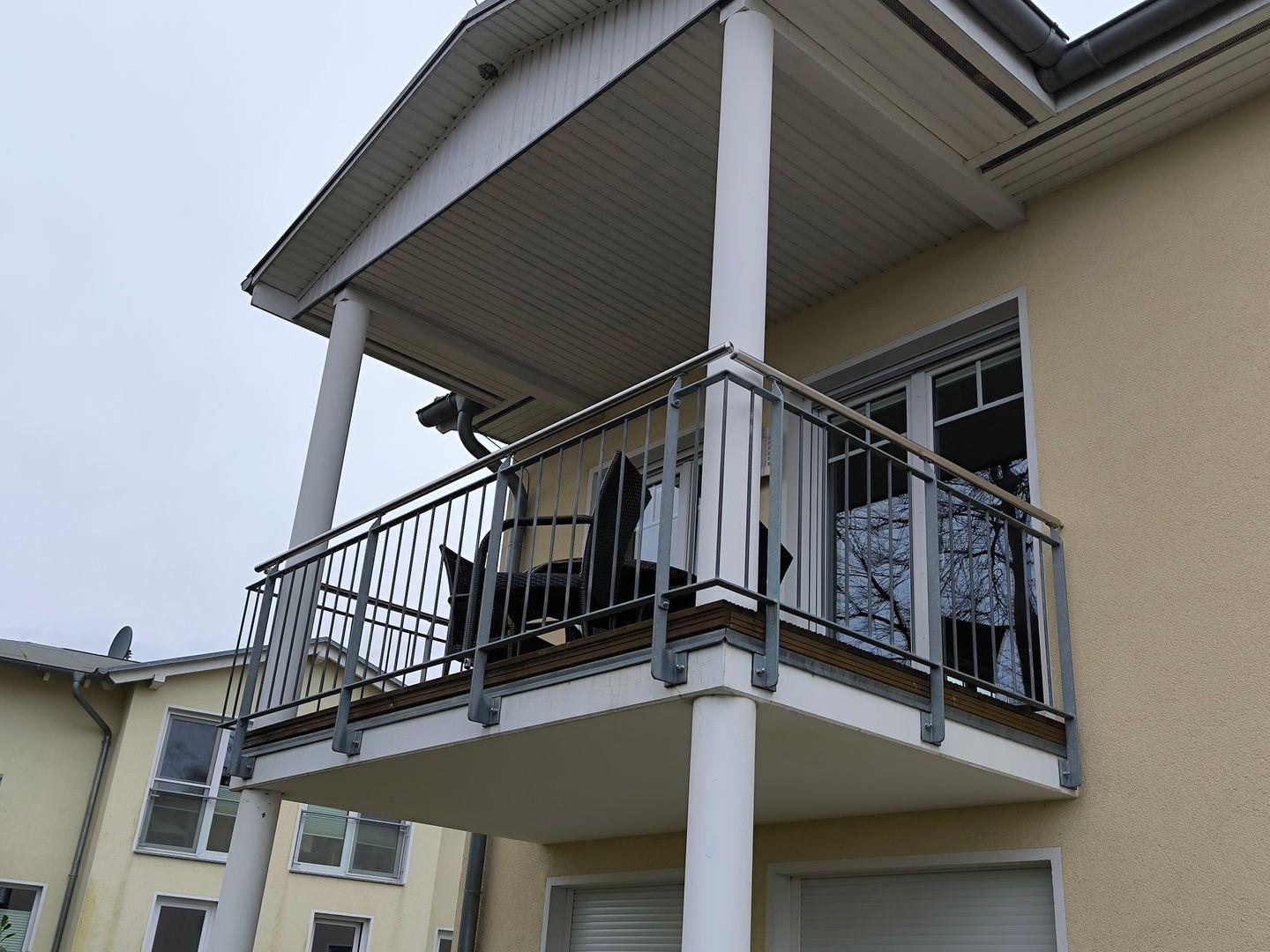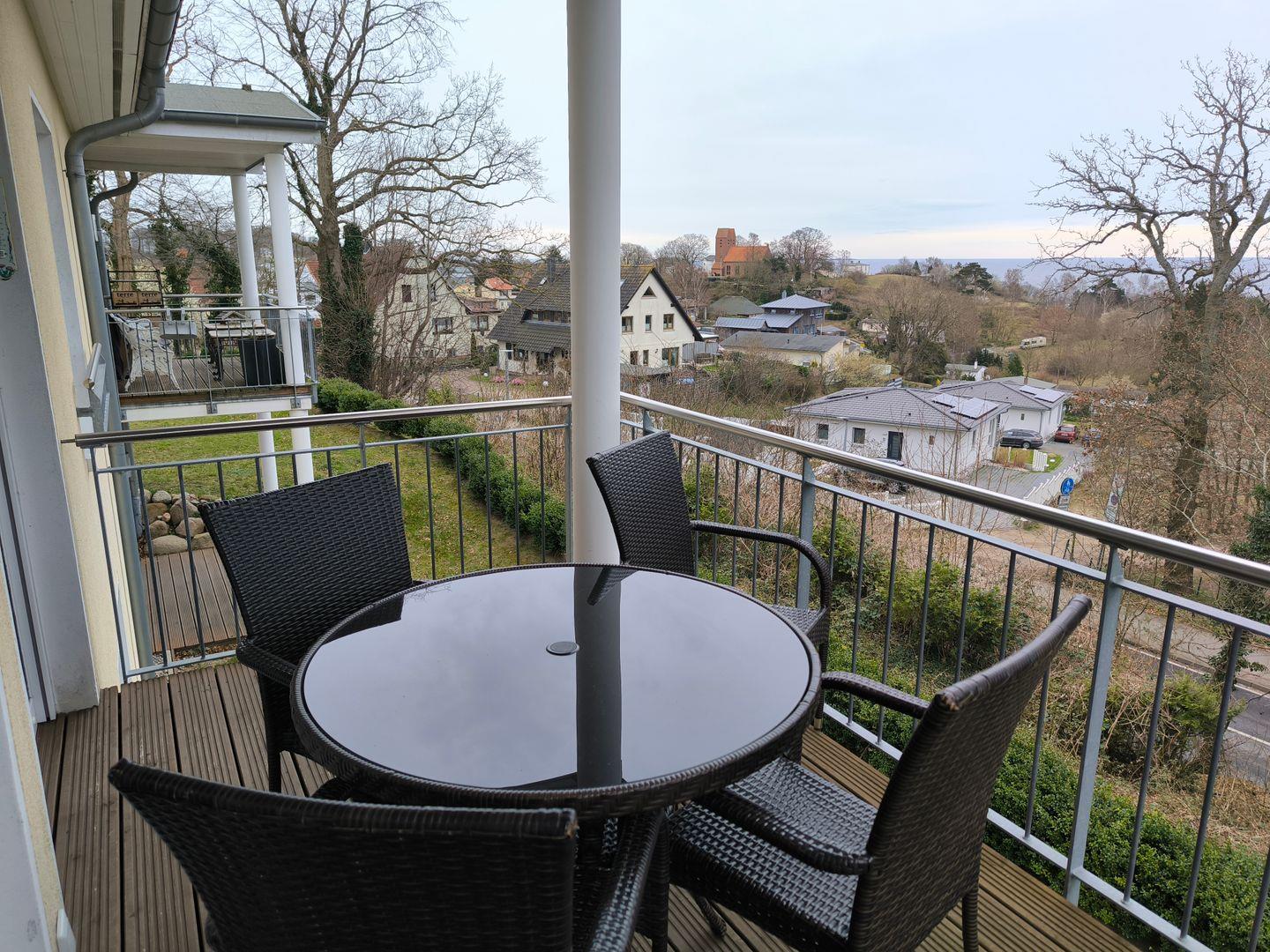 Moderne Ferienwohnung mit Meerblick in Göhren, ideal für Familien mit komfortabler Ausstattung und Balkon.