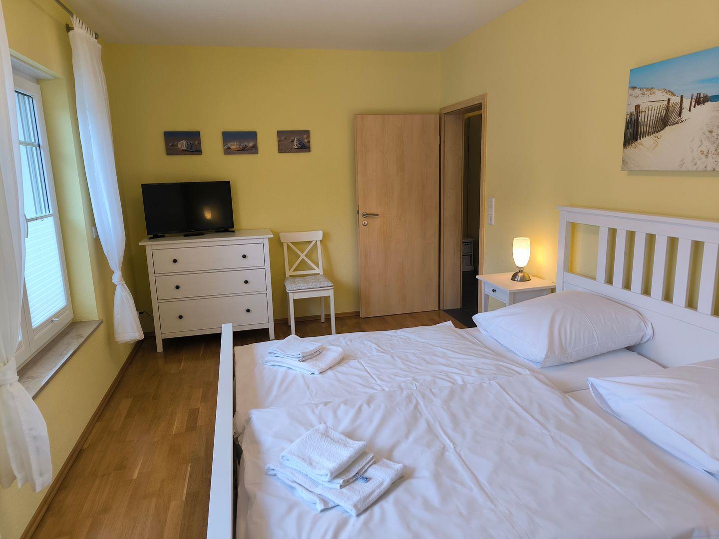 2 Schlafzimmer mit je einem Doppelbett (180 x 200 cm), Kleiderschrank und Flat-TV (Schlafzimmer)