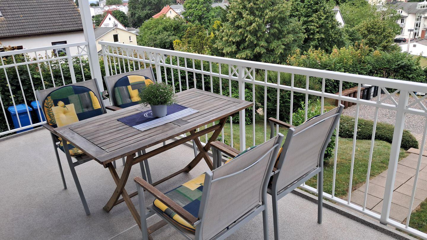 Ferienwohnung Schöne Aussicht in Göhren bietet Panorama, Balkon und Nähe zu Strand und Küstenwald.