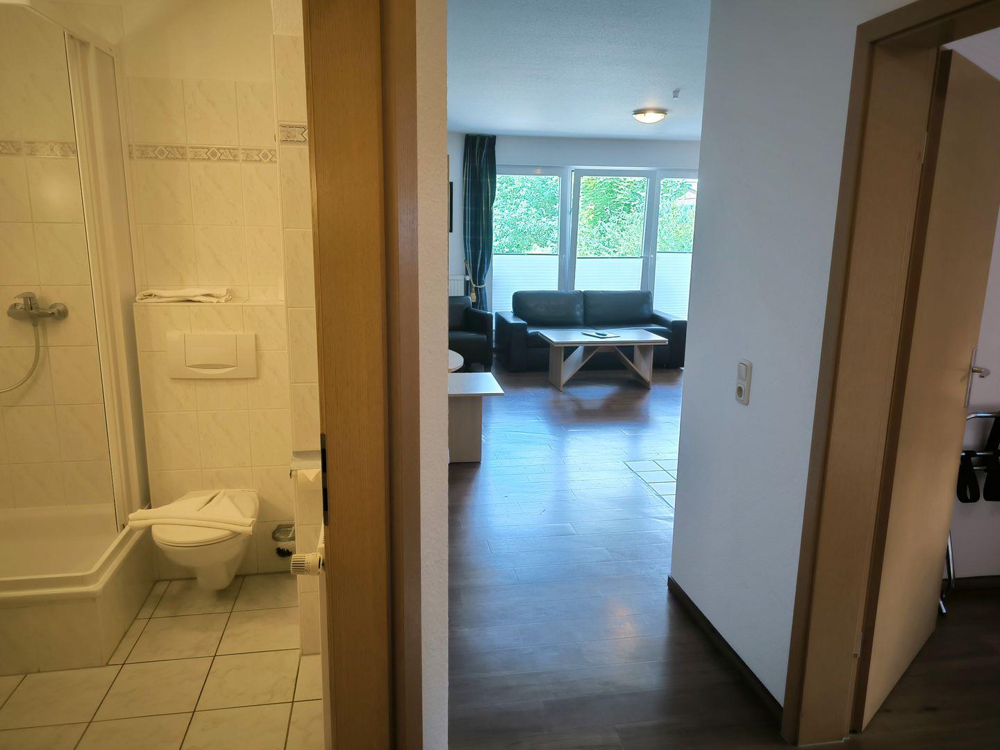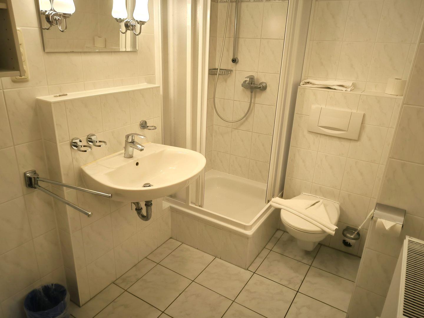 Bad mit Dusche, WC und Föhn