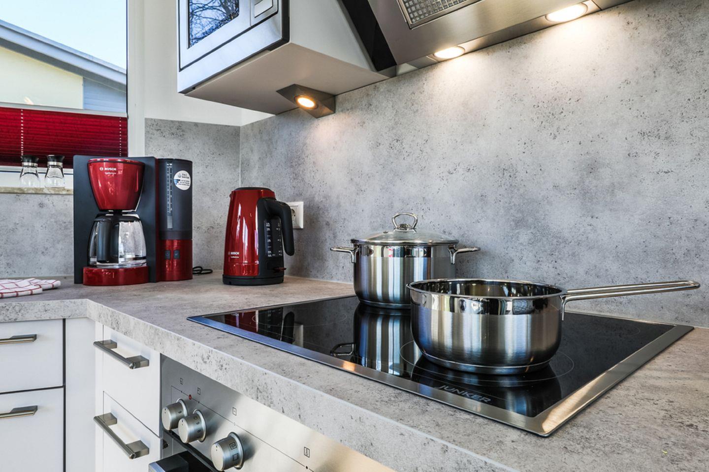 KÜCHE // offene Küche, Ceranfeld, Spülmaschine, Kühlschrank mit Gefrierfach, Mikrowelle, Kaffeemaschine, Toaster, Wasserkocher, reichlich Besteck sowie Geschirr und diverse Küchenutensilien ++