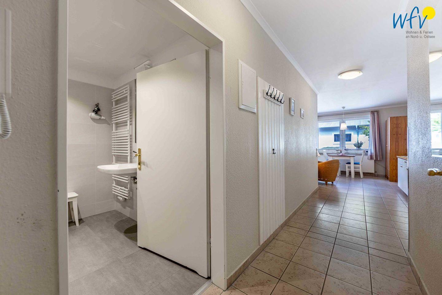 Oder Sie entspannen im Freien bei wohltuender Ostseeluft: Zur Ferienwohnung gehört ein gemütlicher Sitzplatz vor der Terrassentür, die zum Innenhof der Ferienanlage führt. Ein Tisch und drei Stühle laden hier zum Verweilen ein. (Dieser Bereich ist nicht vom Innenhof der Ferienanlage abgetrennt.) Das „Haus am Hövt“ verfügt zudem über einen Gemeinschaftsgarten mit Grillplatz, Tischtennisplatte und Spielmöglichkeiten, den Sie gerne nutzen dürfen.