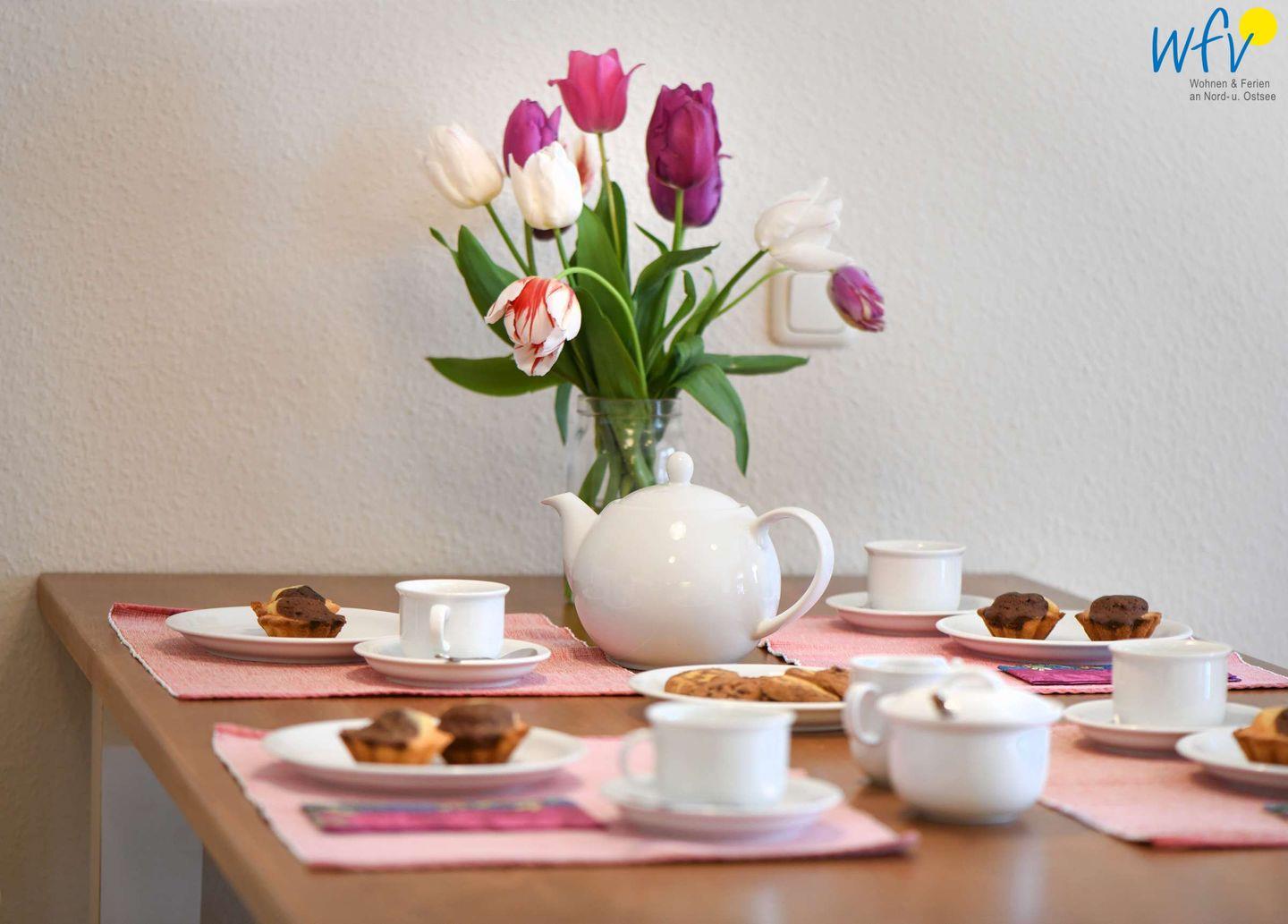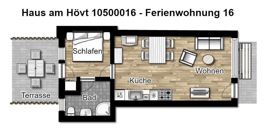 Wunderbar relaxen können Sie vor allem auf der möblierten Nordterrasse! Zu der Ferienanlage „Haus am Hövt“ gehört zudem ein großer Gemeinschaftsgarten mit Grillplatz, Tischtennisplatte und Spielmöglichkeiten, den Sie gerne nutzen dürfen.