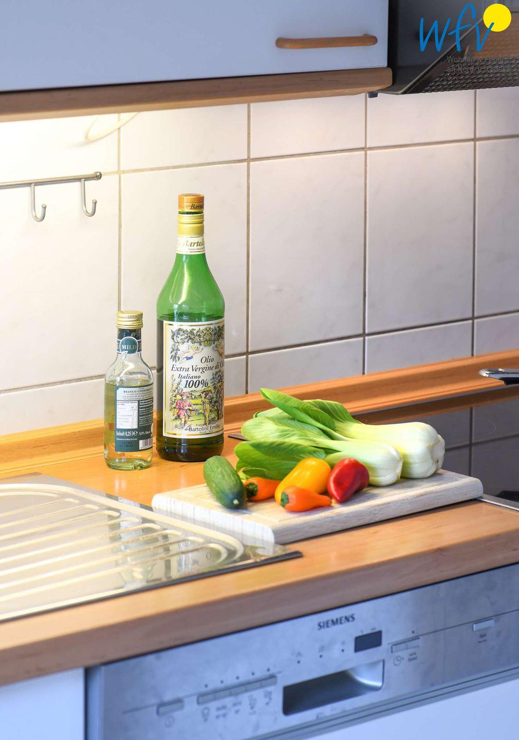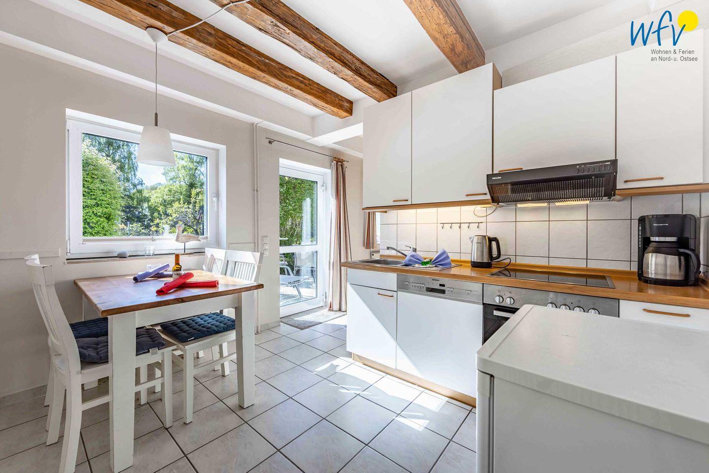 Für eine bequeme Selbstverpflegung in Ihrem Urlaub auf Rügen, verfügt das Ferienhaus über eine gut ausgestattete Küchenzeile u.a. mit Herd, Backofen, Kühlschrank mit Gefrierfach und Geschirrspüler sowie Kaffeemaschine, Wasserkocher und Toaster.