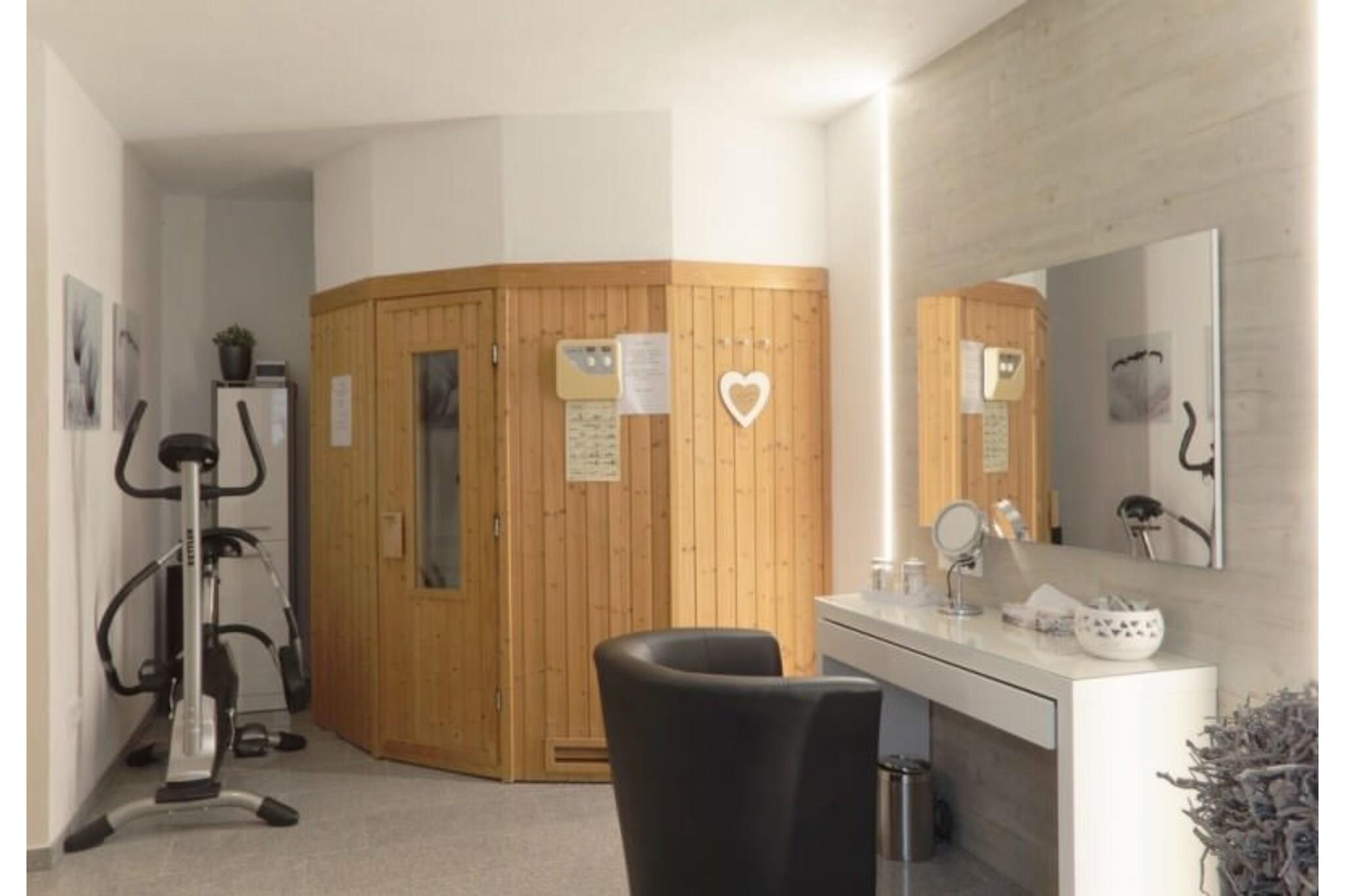 Parterre: (Wohnzimmer(TV(Flatscreen, Satellit), Esstisch, Sitzecke, DVD-Spieler, kabelloses Musiksystem), Küche(Esstisch, Wasserkocher, Kochherd(Ceranfeld), Kaffeemaschine(Vollautomat), Backofen, Spülmaschine, Kühlschrank), Schlafzimmer(Doppelbett, TV(Flatscreen)), Schlafzimmer(Doppelbett, Waschbecken), Badezimmer(Badewanne, Whirlwanne, Dusche, Sauna, Waschbecken, Fitnessgeräte), Badezimmer(Waschbecken, Toilette), Waschmaschine, Kinderbett, Bügelbrett, Bügeleisen) Spielzimmer(Gemeinschaftliche Nutzung mit anderen Gästen, auf dem Gelände), Sauna, Terrasse(überdacht), Garten, Gartenmöbel, Liegen, Parkplatz, Spielgeräte(Gemeinschaftliche Nutzung mit anderen Gästen), Fußballtor(Gemeinschaftliche Nutzung mit anderen Gästen), Hochstuhl