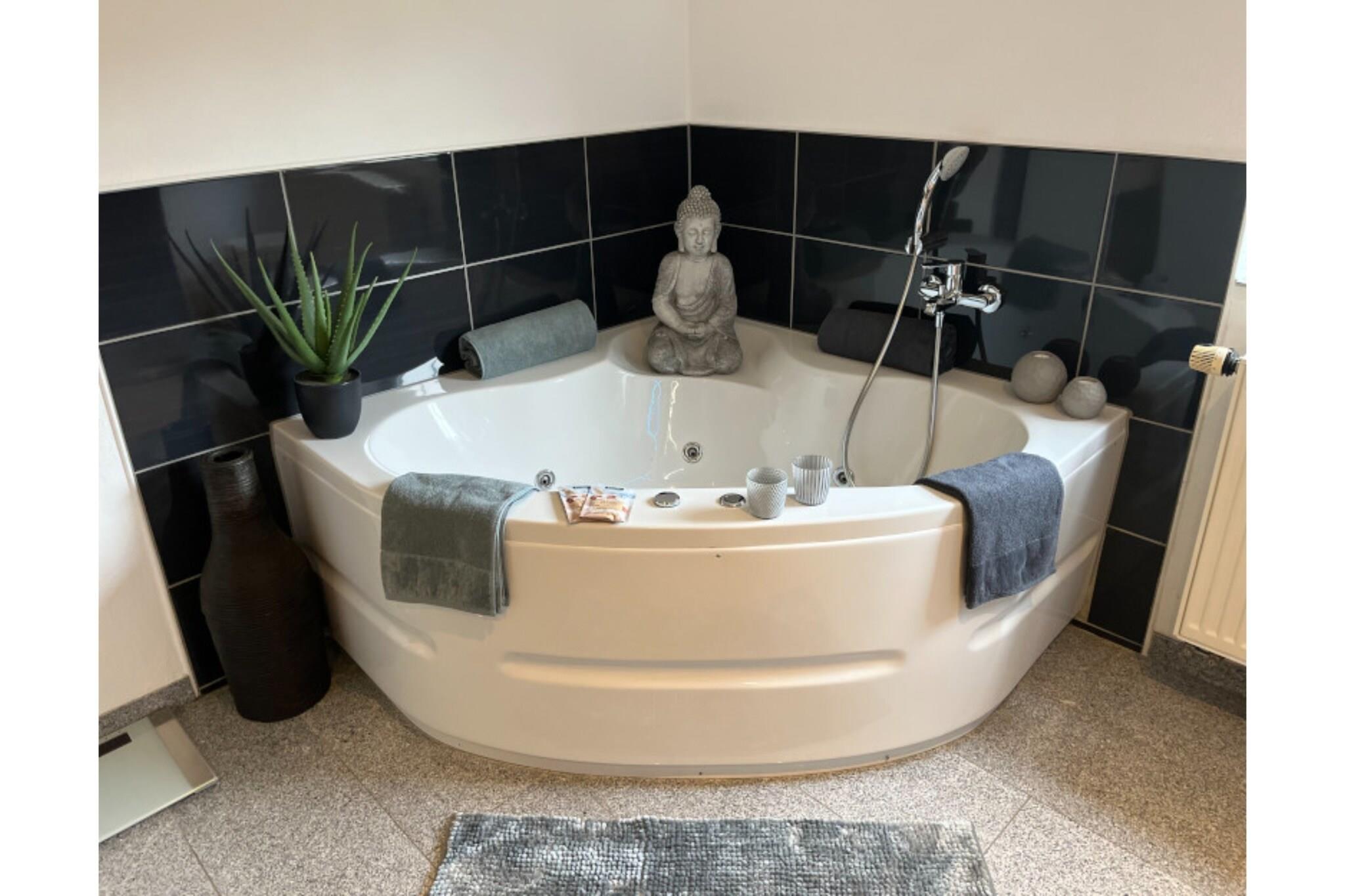 Dieses hochwertige Ferienhaus bietet auf über 100 m² viel Platz und Komfort für bis zu vier Personen und ist ideal für einen erholsamen Urlaub in ruhiger Umgebung. Der großzügige Wohnbereich mit TV lädt zum gemütlichen Verweilen ein, während die bestens ausgestattete Küche mit Geschirrspüler und Kaffeevollautomat alles bietet, was Sie für gemeinsame Kochabende benötigen. Zwei komfortable Schlafzimmer mit Doppelbetten sorgen für erholsame Nächte. Das große Badezimmer mit Whirlpool-Wanne, Wellness-Dusche und Kosmetikbereich verwandelt Ihren Aufenthalt in ein kleines Spa-Erlebnis. Ein besonderes Highlight ist der private Wellnessbereich mit Sauna sowie Fitnessmöglichkeiten. Natursteinböden und Fußbodenheizung sorgen im gesamten Haus für ein angenehmes Raumklima. Auch der Außenbereich lädt zum Entspannen ein: Auf der überdachten Terrasse mit Gartenmöbeln, der Liegewiese mit Sonnenliegen oder beim Grillen können Sie die Ruhe genießen. Familien mit Kindern profitieren zudem von verschiedenen Spielmöglichkeiten im Außenbereich. WLAN, Waschmaschine, Trockner sowie ein Arbeitsplatz runden die komfortable Ausstattung ab und machen das Haus sowohl für Familien als auch für längere Aufenthalte ideal.
