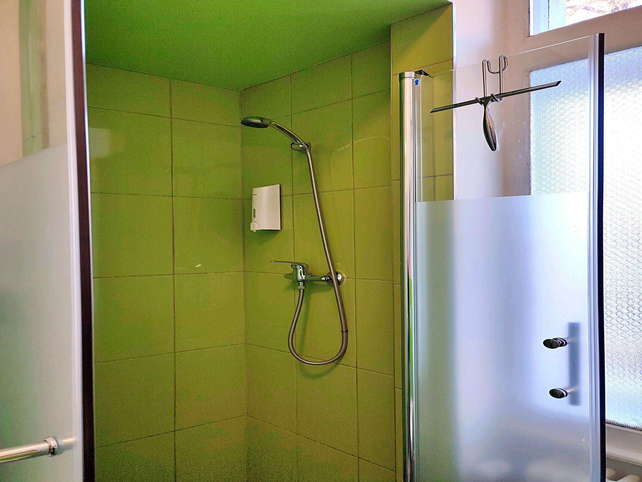 Bad mit Dusche, WC, Haartrockner, Tritthocker