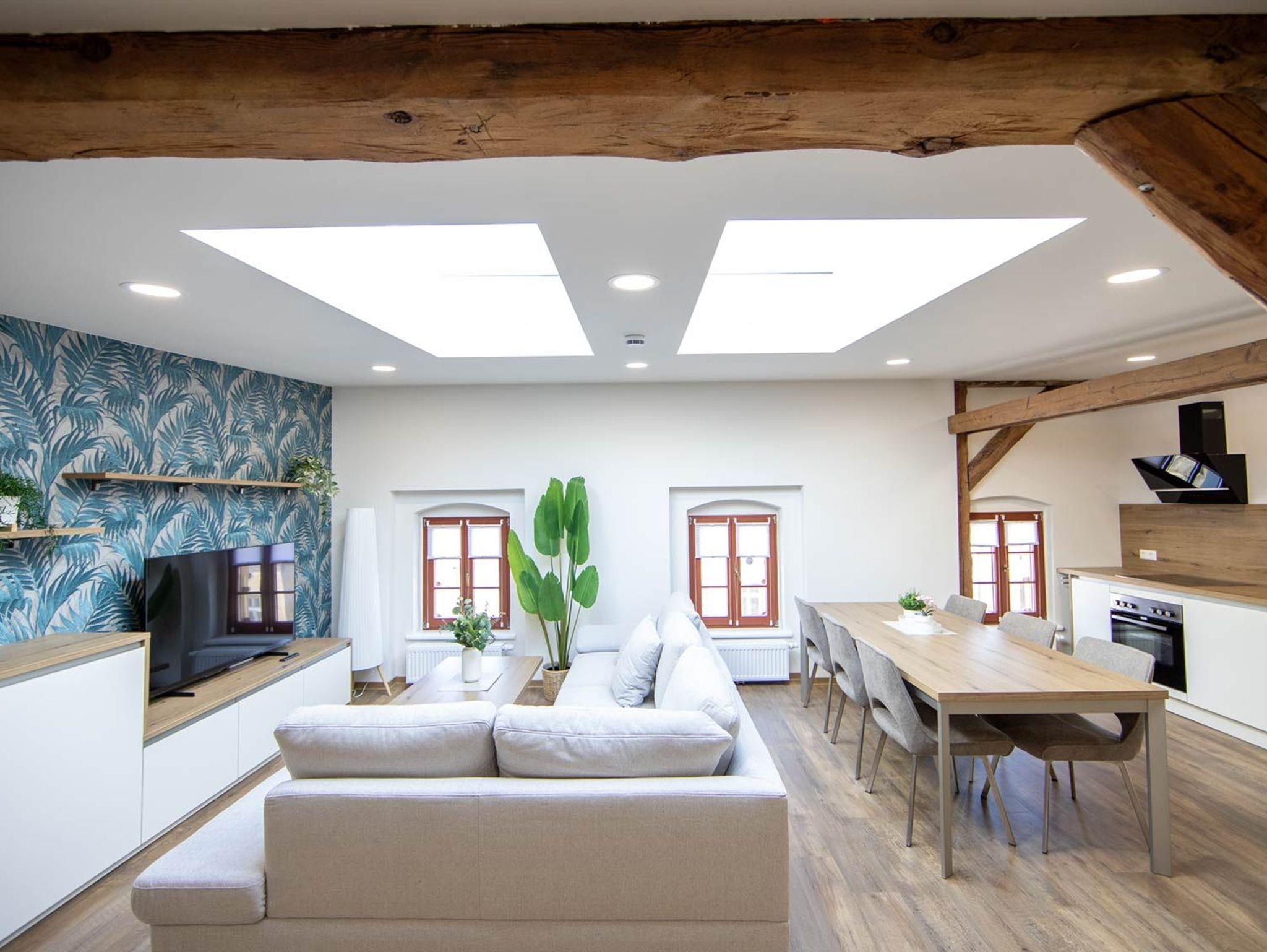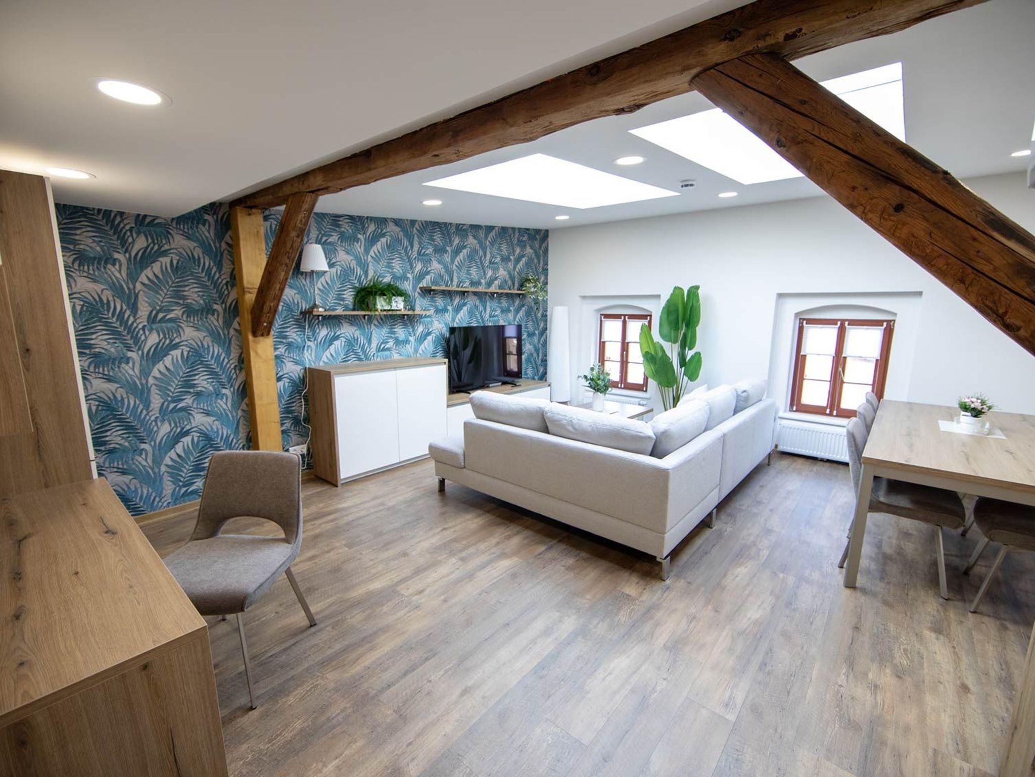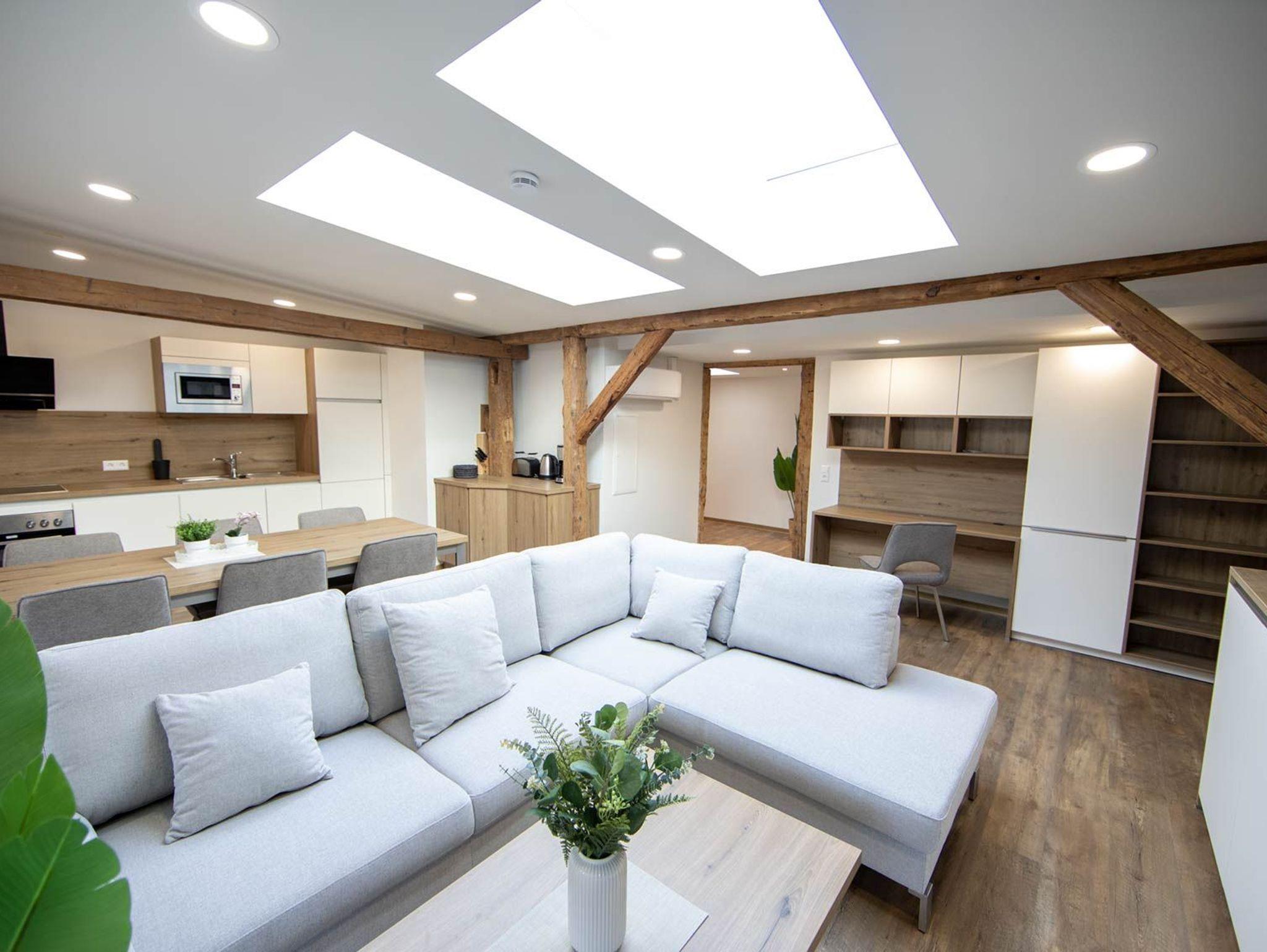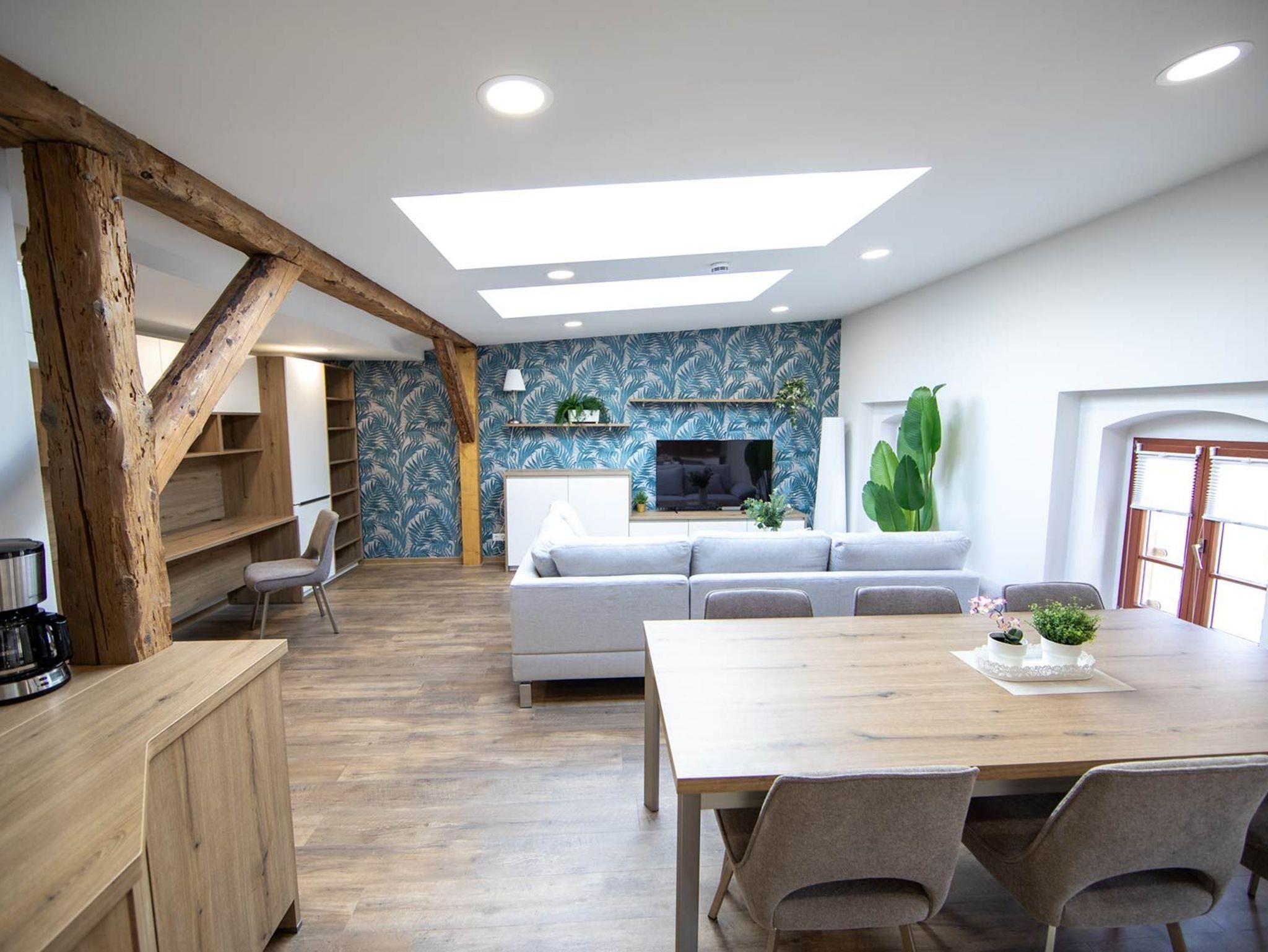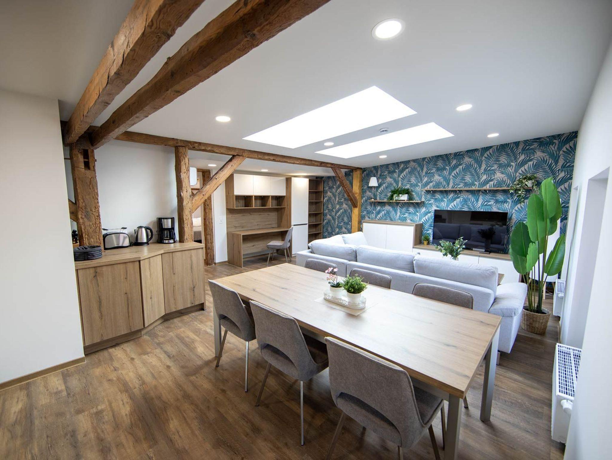 Historische Deckenbalken, edle Materialien und ein durchdachtes Farbkonzept schaffen ein Ambiente, das Ruhe ausstrahlt und Inspiration schenkt ideal für kurze oder längere Aufenthalte. Einzigartig in diesem Apartment ist der große Arbeitsbereich. Ob Sie geschäftlich unterwegs sind oder Görlitz als Kulturstadt erleben möchten: Dieses Apartment bietet Raum zum Arbeiten, Entspannen und Genießen.