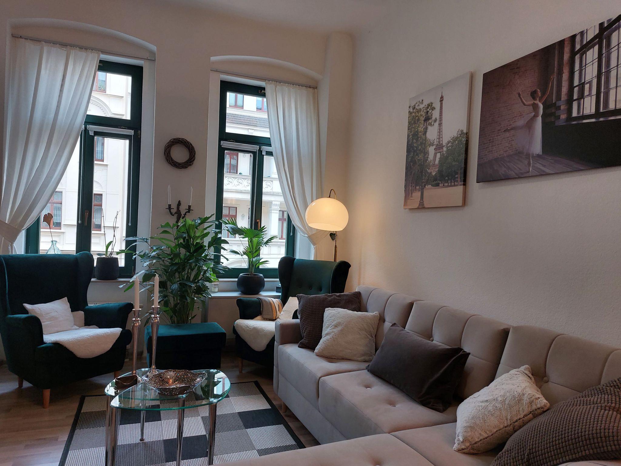 Die wunderschöne Altbauwohnung befindet sich im ersten Stock eines Mehrfamilienhauses. Die Ferienwohnung besteht aus einem Wohnzimmer, Schlafzimmer, Küche und Bad. Das Schlafzimmer liegt in Richtung Innenhof und ist deshalb sehr ruhig.