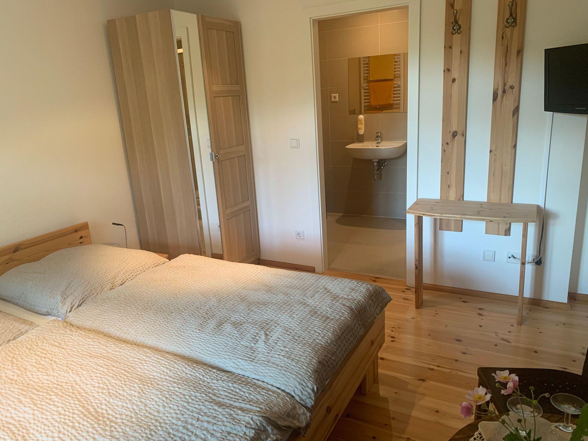 Das Zimmer verfügt über ausreichend Platz für zwei Personen. Zu jedem Zimmer gehört selbstverständlich ein eigenes modernes Badezimmer.