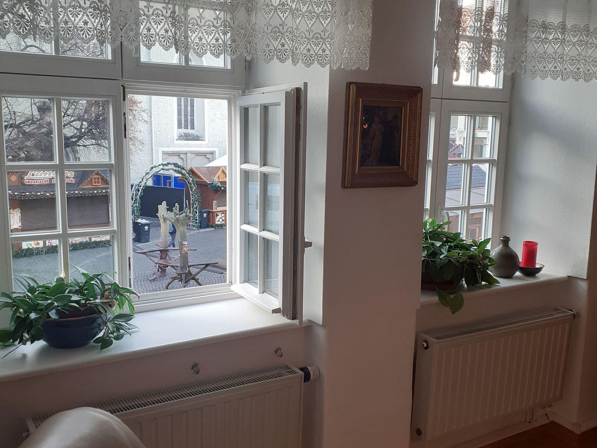 Unsere große gemütliche Ferienwohnung liegt im ersten Stock eines denkmalgeschützten Mehrfamilienhauses am Obermarkt inmitten der Görlitzer Altstadt. Von hier hat man einen wundervollen Blick auf den Georgsbrunnen, an dem die Stadtführungen beginnen, und die Dreifaltigkeitskirche. So ist man zum Schlesischen Christkindelmarkt, dem Altstadtfest oder dem Straßentheaterfestival ViaThea mitten im Geschehen und kann dem Treiben auch vom Wohnzimmerfenster aus zusehen. Eine Besonderheit unserer Ferienwohnung ist die umfangreiche Bibliothek u.a. mit Literatur zur Geschichte von Görlitz, der Oberlausitz und Schlesien.