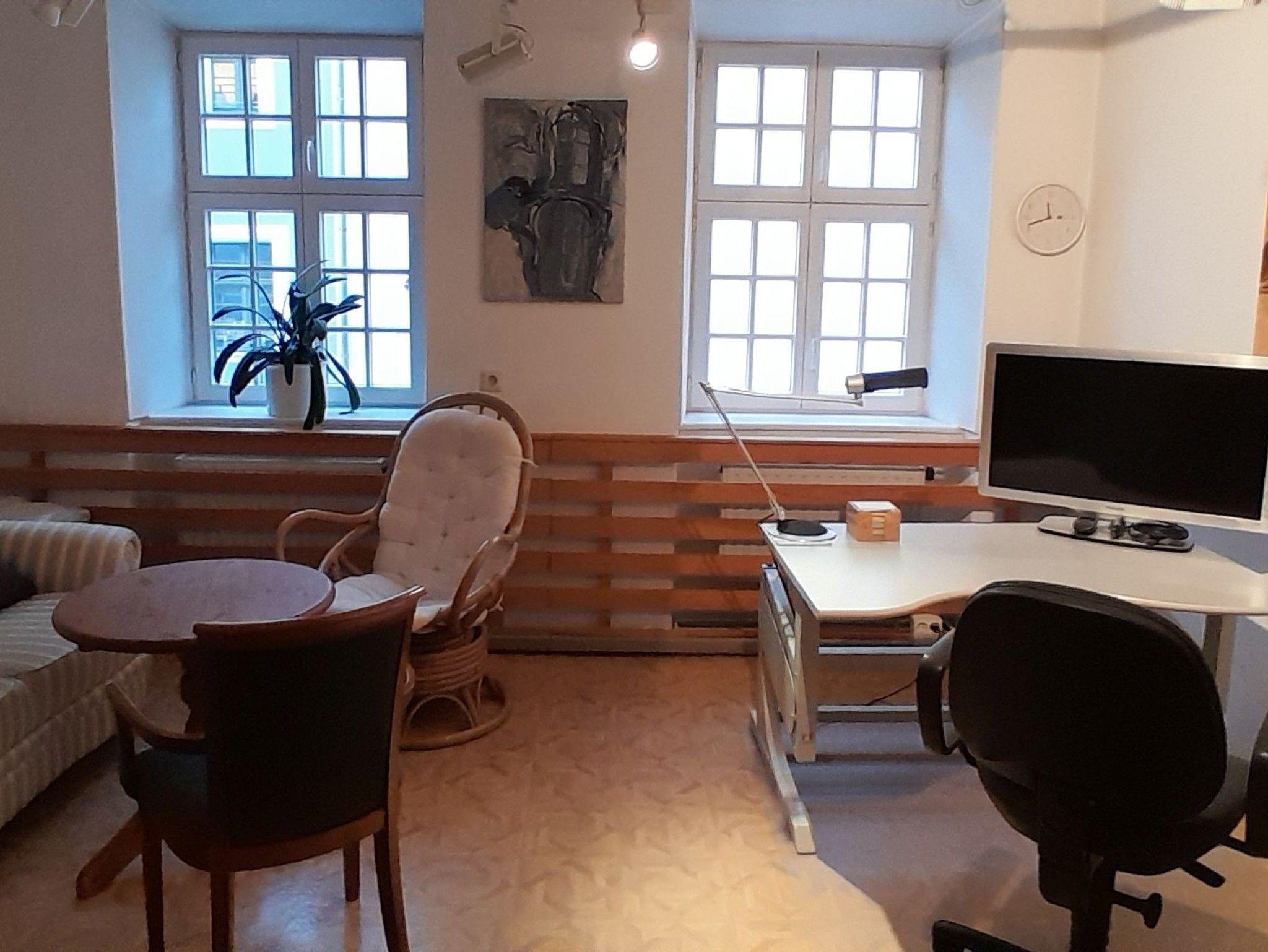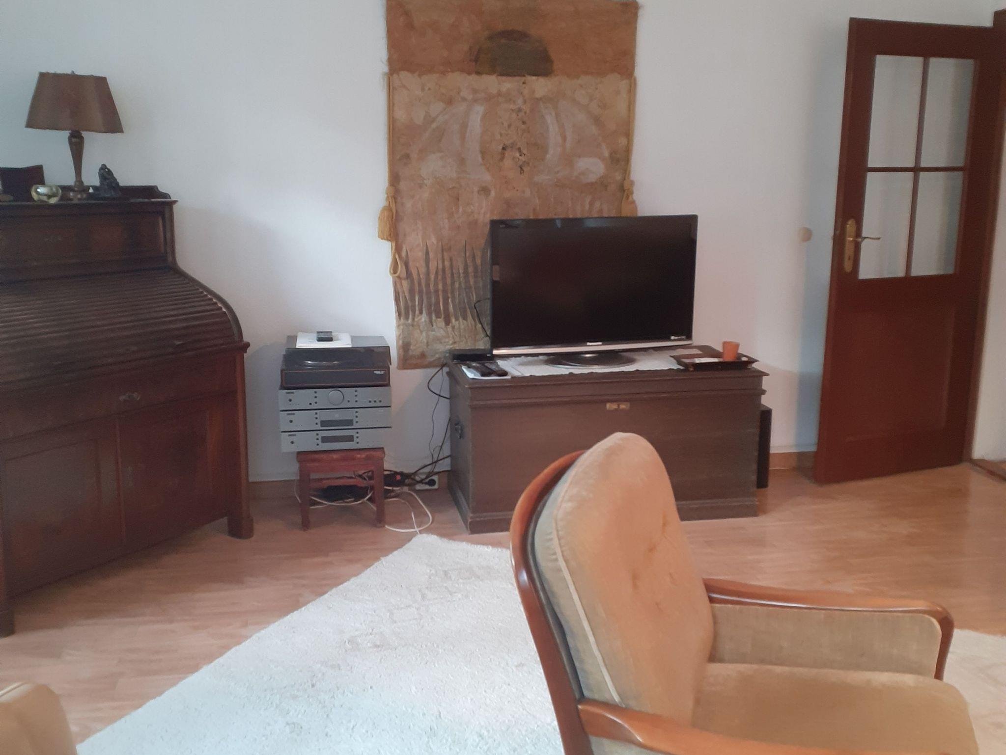 Die großzügige, rund 100 m² große Ferienwohnung bietet Ihnen viel Platz und Komfort: Sie umfasst ein helles Wohnzimmer, ein gemütliches Esszimmer, eine voll ausgestattete Küche, ein separates Büro, ein Bad sowie zwei Schlafzimmer.