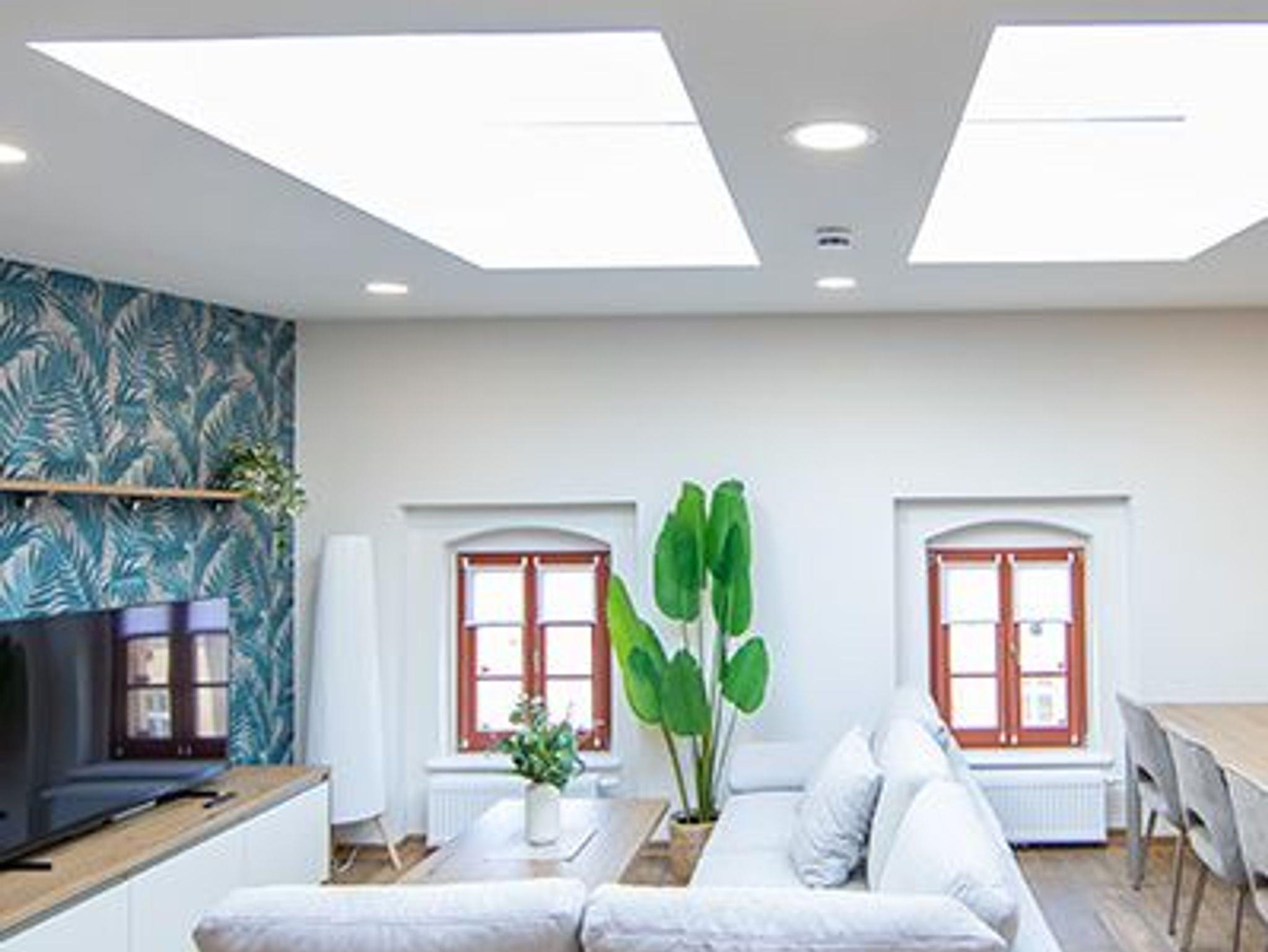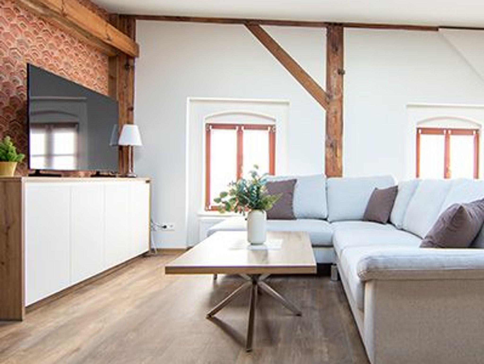 Historische Deckenbalken, edle Materialien und ein durchdachtes Farbkonzept schaffen ein Ambiente, das Ruhe ausstrahlt und Inspiration schenkt ideal für kurze oder längere Aufenthalte. Einzigartig in diesem Apartment ist die Größe und der Blick vom Demianiplatz bis zur Landeskrone. Ob Sie geschäftlich unterwegs sind oder Görlitz als Kulturstadt erleben möchten: Dieses Apartment bietet Raum zum Arbeiten, Entspannen und Genießen.