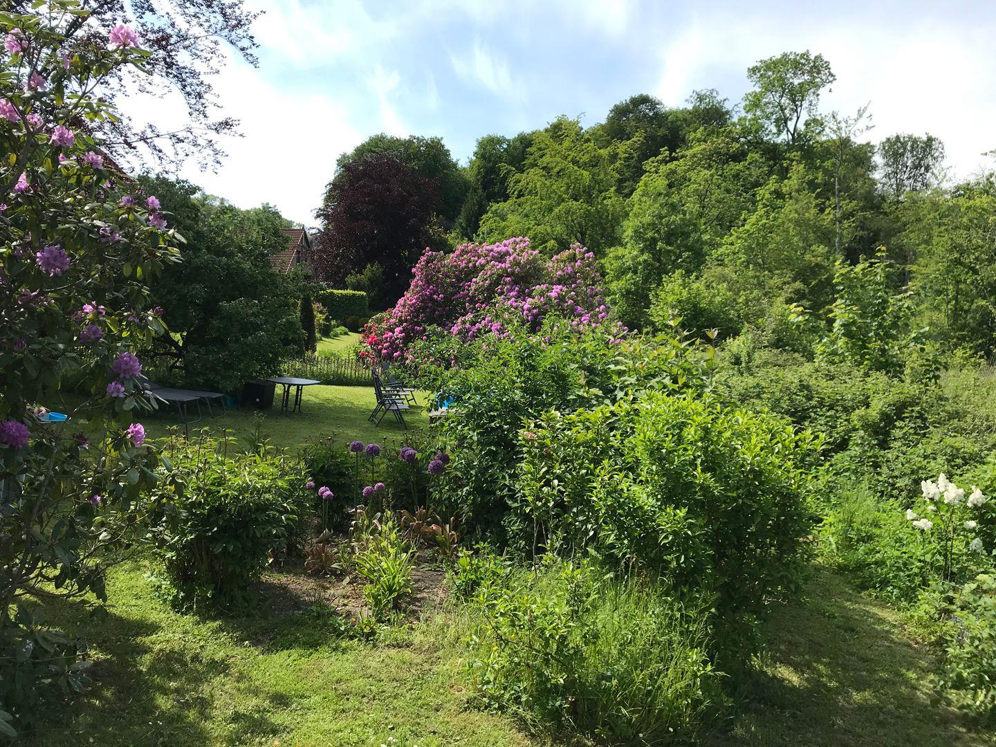 Der Garten grenzt an urigen Wald, der der bekannten Internatsschule Louisenlund gehört. Das Haus liegt in einer