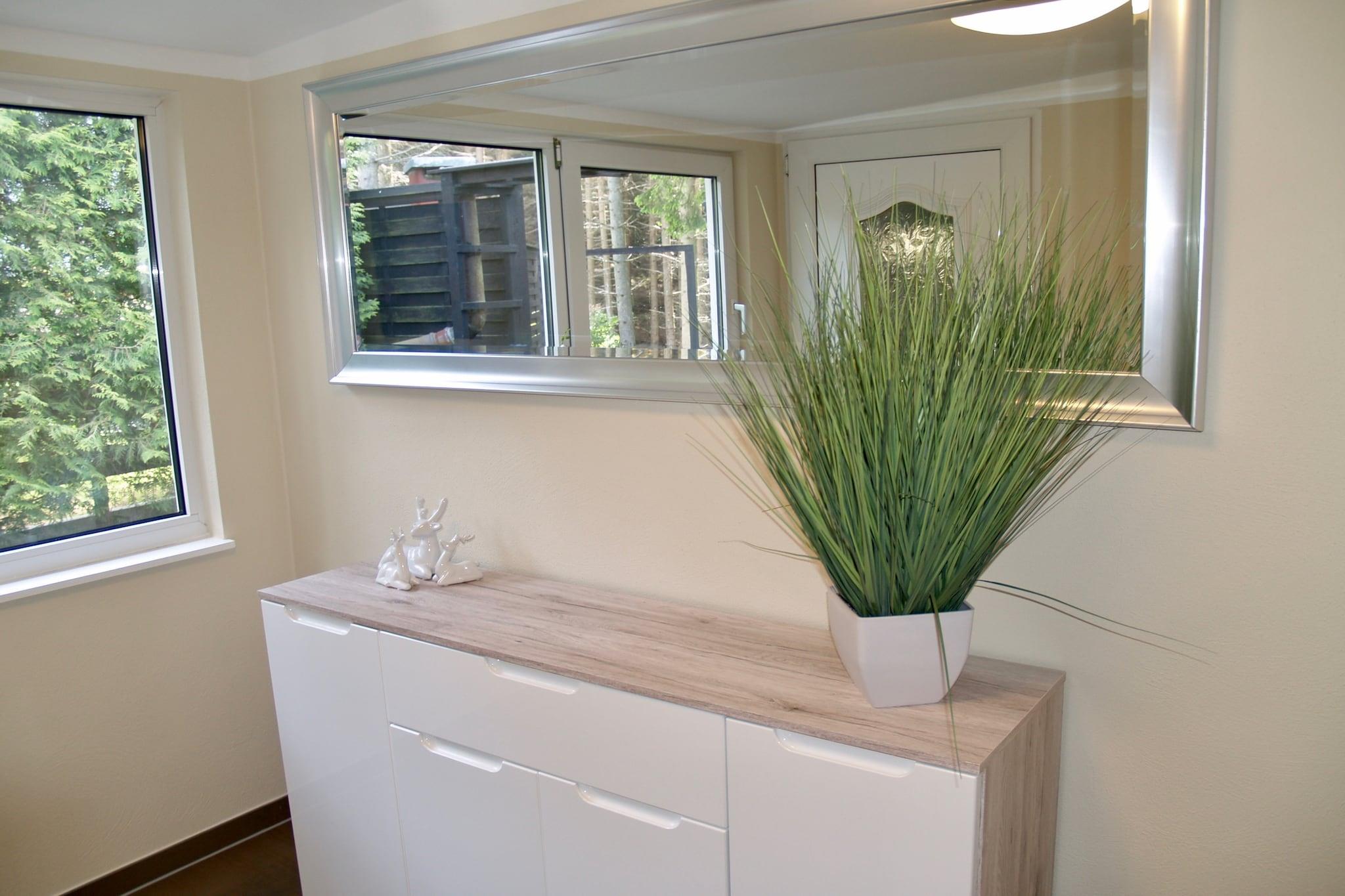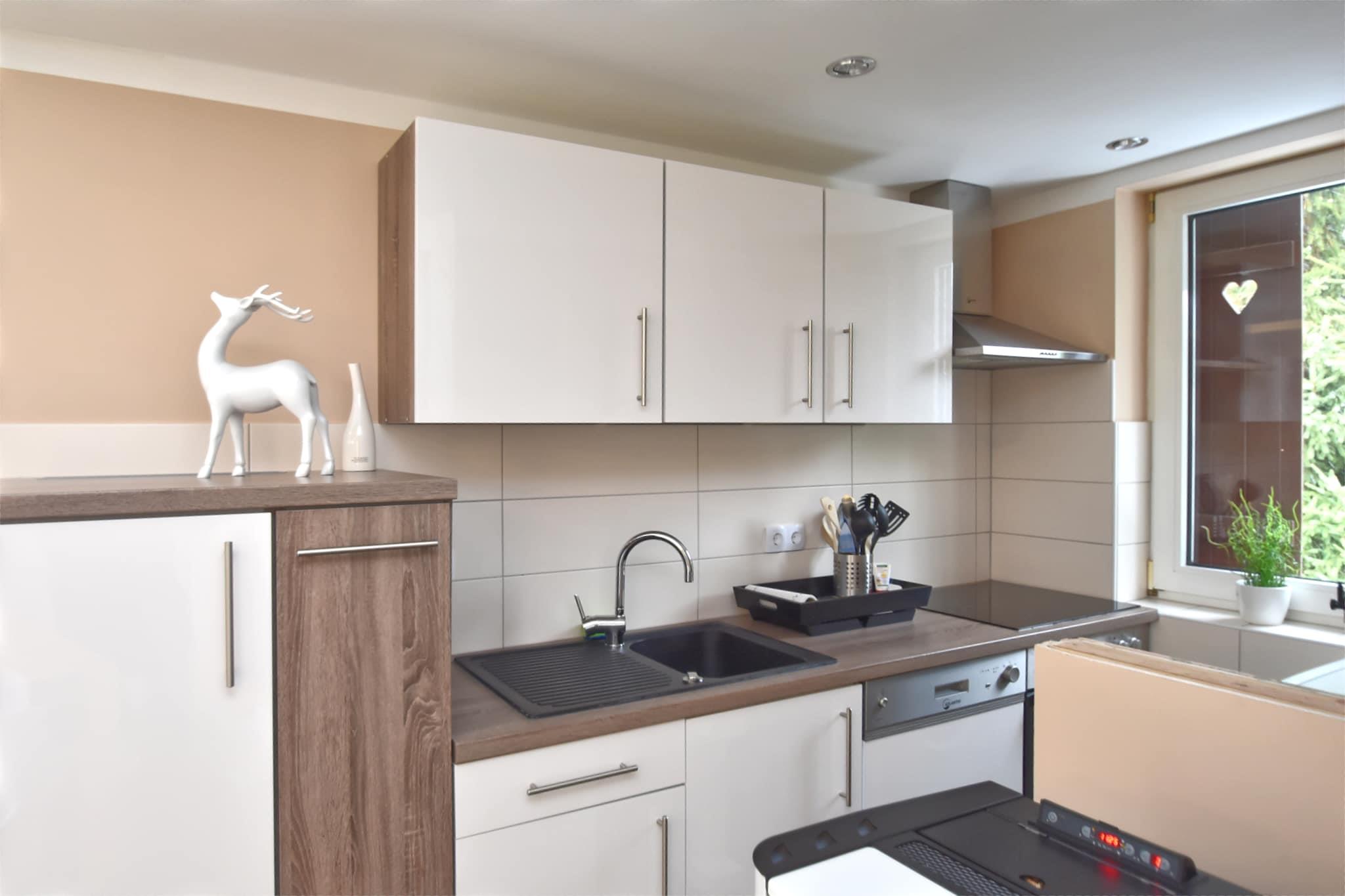 Dieses einladende Erdgeschoss-Ferienhaus in Friedrichshöhe, Güntersberge, bietet einen gemütlichen und haustierfreundlichen Aufenthalt inmitten wunderschöner Natur. Das Wohn-/Esszimmer verfügt über Sat-TV mit niederländischen Sendern, einen Pelletofen, einen DVD-Player und ein Radio – ideal für entspannte Abende. Die voll ausgestattete offene Küche mit Cerankochfeld, Backofen, Mikrowelle, Toaster, Geschirrspüler, Kühl-/Gefrierkombination und einem Filterkaffeevollautomaten ermöglicht Ihnen entspanntes Selbstkochen. Gäste schlafen geruhsam in einem Schlafzimmer mit Boxspringbetten und einem zweiten mit Etagenbett. Das Badezimmer ist mit Dusche, WC, Waschbecken und Haartrockner ausgestattet. Kamin, Waschmaschine und Insektenschutz sorgen ganzjährig für zusätzlichen Komfort. Entspannen Sie im Freien auf der überdachten privaten Terrasse (15 m²) oder genießen Sie die Sonne im teilweise eingezäunten 300 m² großen Garten mit Liegestühlen, Holzkohlegrill und Gartenmöbeln. Zwei private Parkplätze bieten eine gute Anbindung und machen dieses Ferienhaus zum idealen Ausgangspunkt für Familienurlaube oder naturnahe Wochenendausflüge. Dank der nahegelegenen Wälder (5 km), Seen (3 km) und Langlaufloipen (3 km) können Sie Entspannung und Outdoor-Abenteuer problemlos verbinden. Wichtige Geschäfte und Restaurants sind 2–8 km entfernt und öffentliche Verkehrsmittel – einschließlich Bahnhof und Bushaltestelle – sind nur 200 m entfernt.