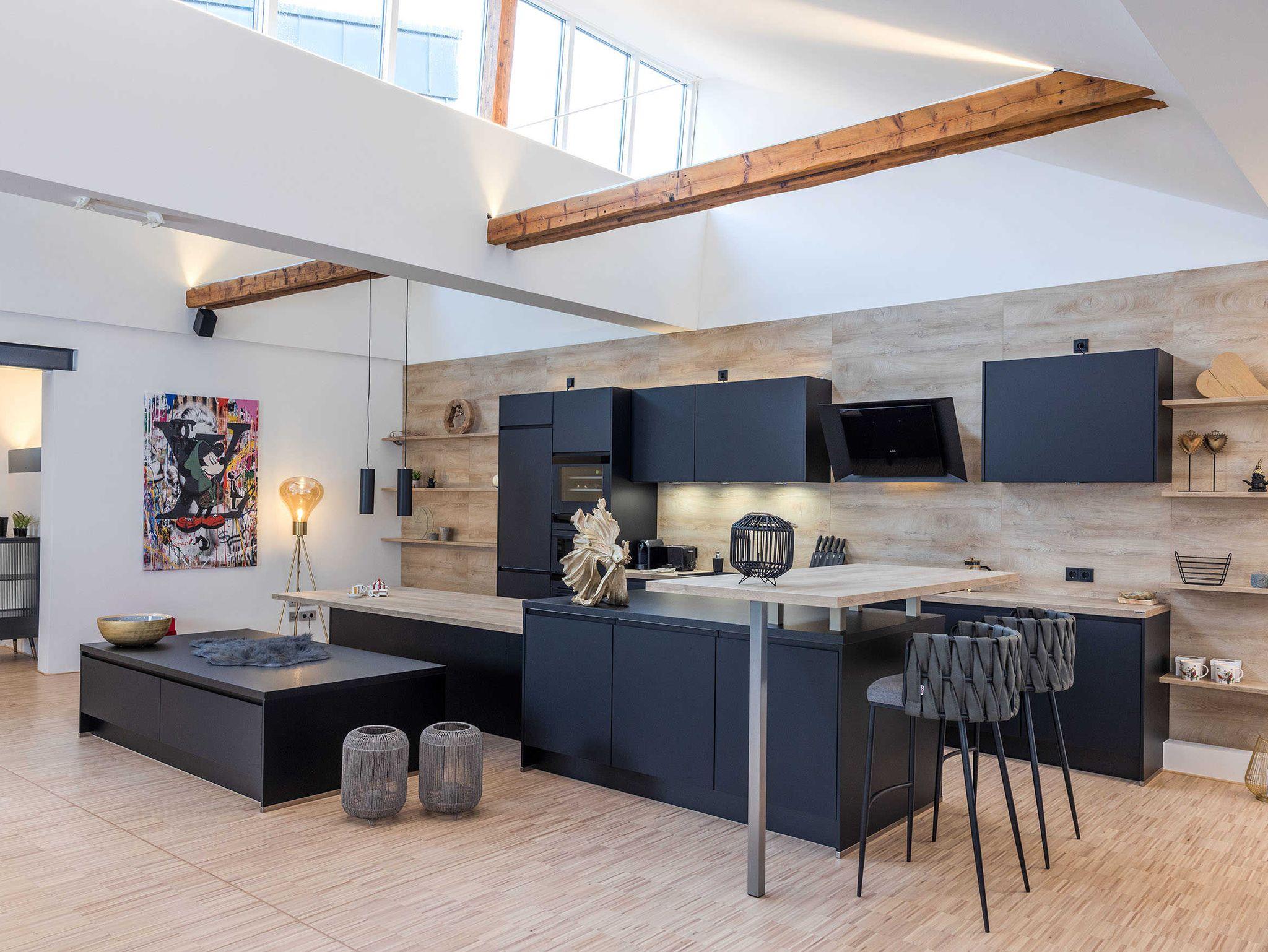 findet man u.a. eine hochwertige Küche, eine Wohnecke und eine