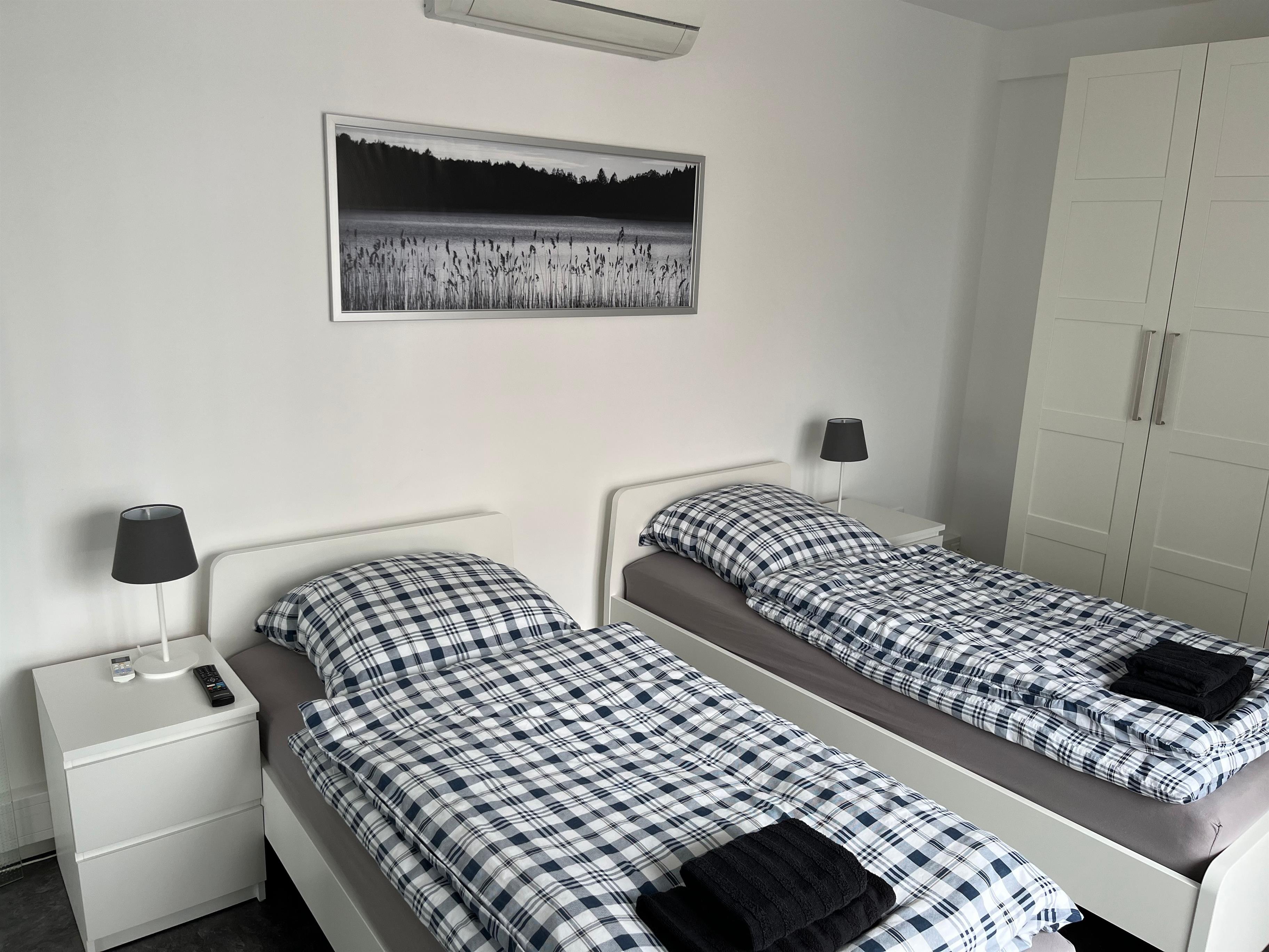 beide Schlafzimmer: je 2 Betten 90x200, Nachttisch, Kleiderschrank und TV, das große Schlafzimmer mit Klimaanlage