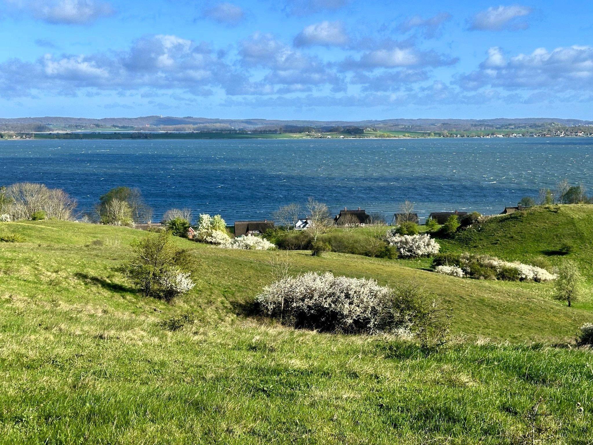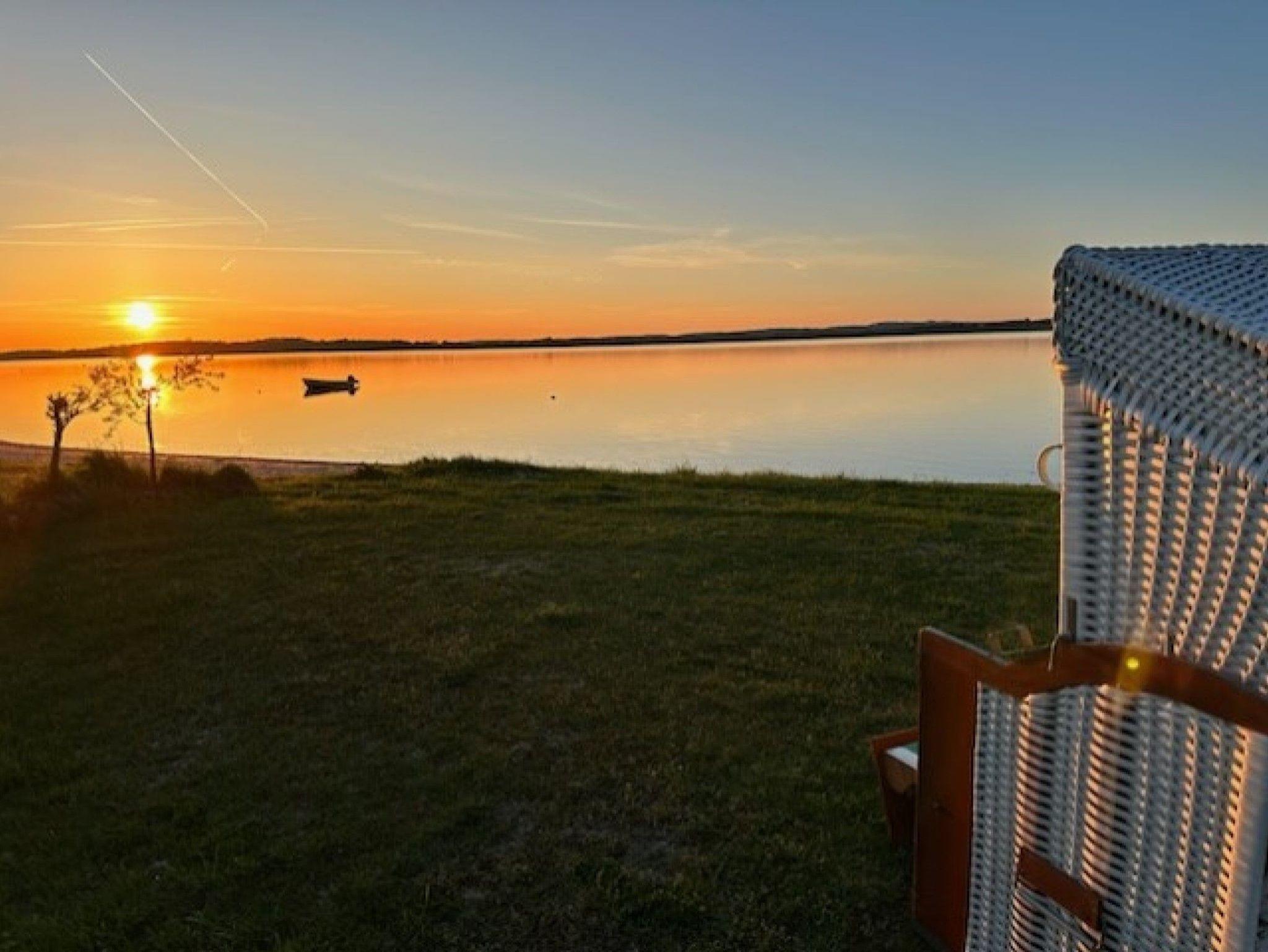 Der private Wasserzugang zum Bodden ist etwa 100 m vom Haus entfernt und über eine Treppe erreichbar. Hier können Sie sich in Ihrem eigenen Strandkorb erholen. Das großzügige Grundstück bietet großen und kleinen Gästen die Möglichkeit, viele Aktivitäten direkt vom Haus aus zu unternehmen. Der Bodden ist eine ruhige Bucht der Ostsee und somit ideal zum gefahrlosen Planschen als auch zum Ausüben diverser Wassersportarten. Am Wasser stehen Ihnen zusätzlich ein Strandkorb und zwei Sonnenliegen zur Verfügung, je nach Wetterlage etwa von Mai bis Anfang Oktober. Eine Treppe führt direkt zum Wasser. Das Grundstück ist NICHT eingezäunt!