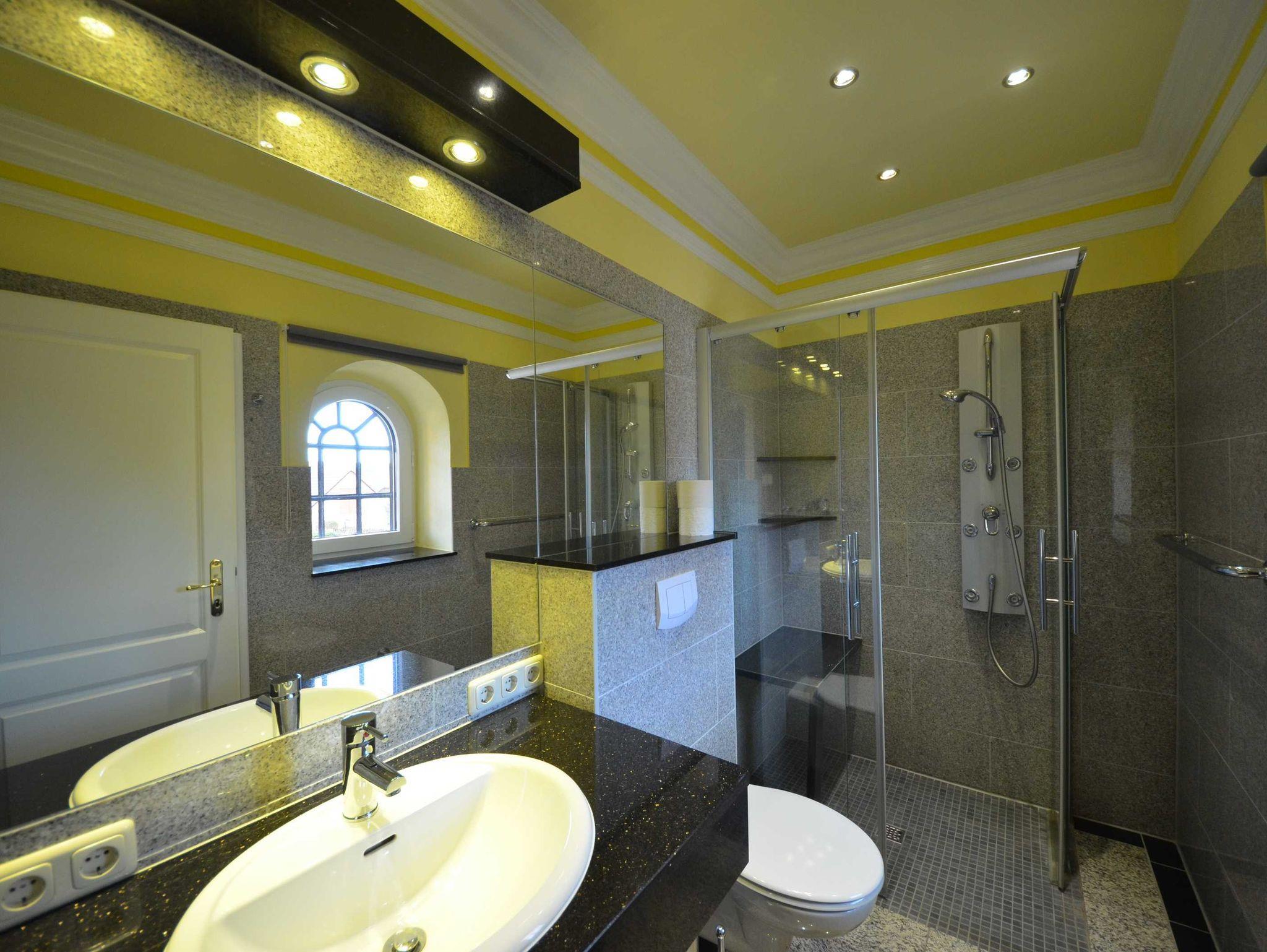 Die Ausleuchtung der Bäder erfolgt auch über den Waschbecken in