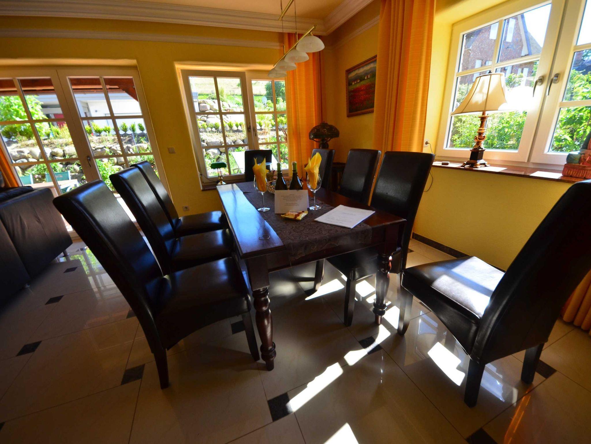 mit 8 Stühlen, großer Hark-Kaminofen, Holz ist kostenlos und am Haus