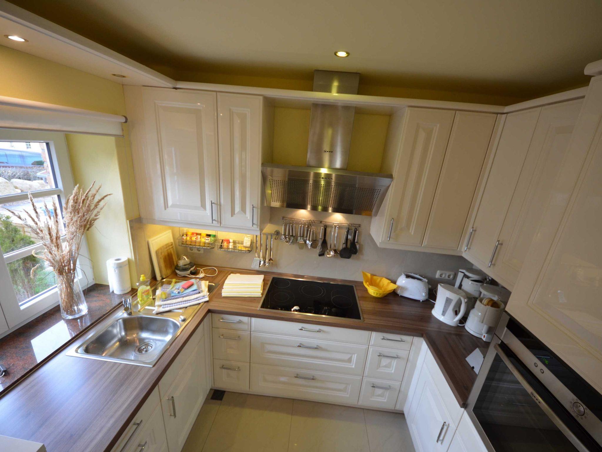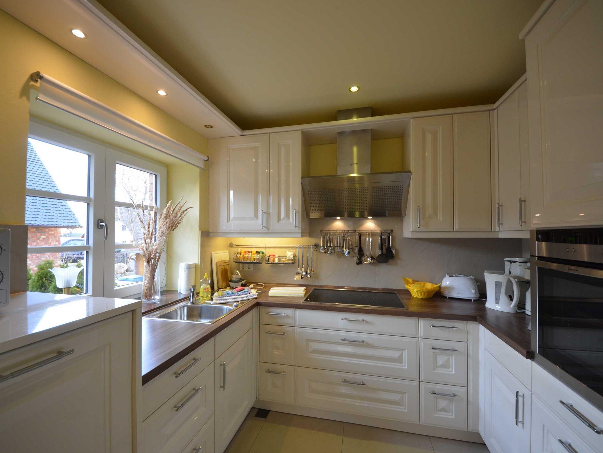 Sehr schöne große Einbauküche in vanillegelb und Buche,