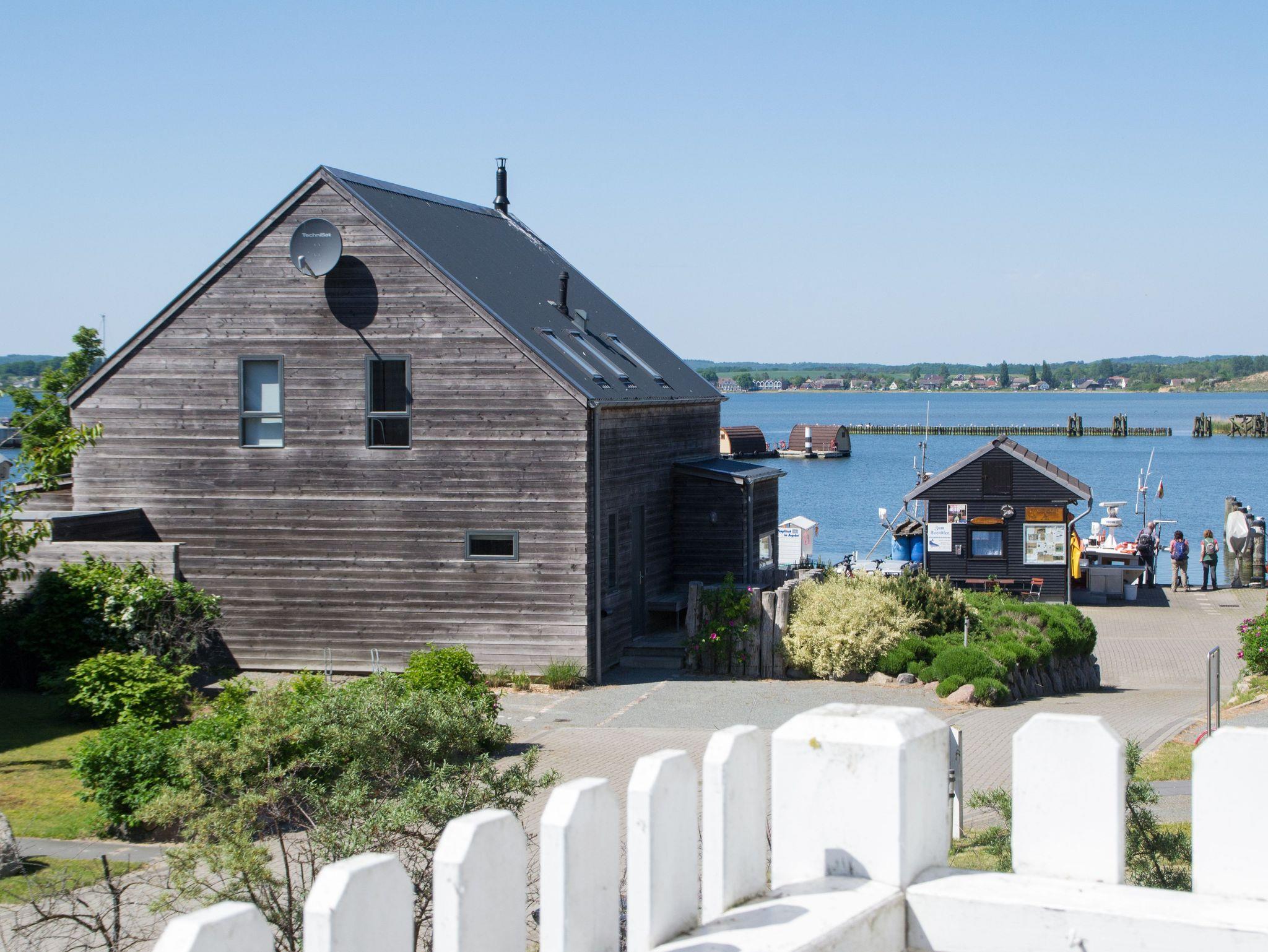 Ferienhaus Ilsebill in Gager bietet schwedischen Stil, Sauna, Kamin und Blick auf den Hafen sowie die Natur Rügens.