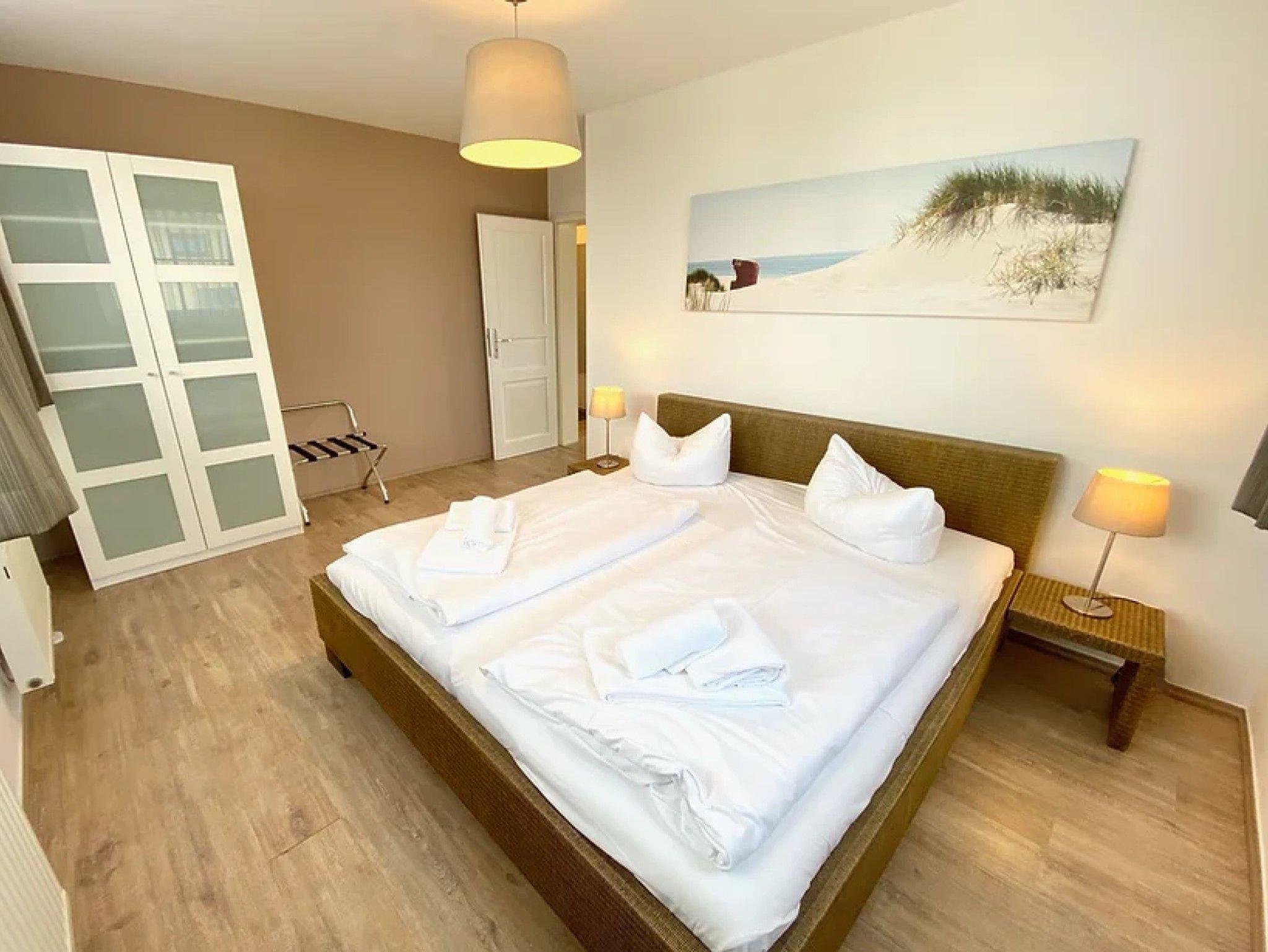 • 1 Schlafzimmer mit einem 1,80 m breiten Doppelbett und 1 Schlafzimmer mit einem 1,60 m breiten Doppelbett
