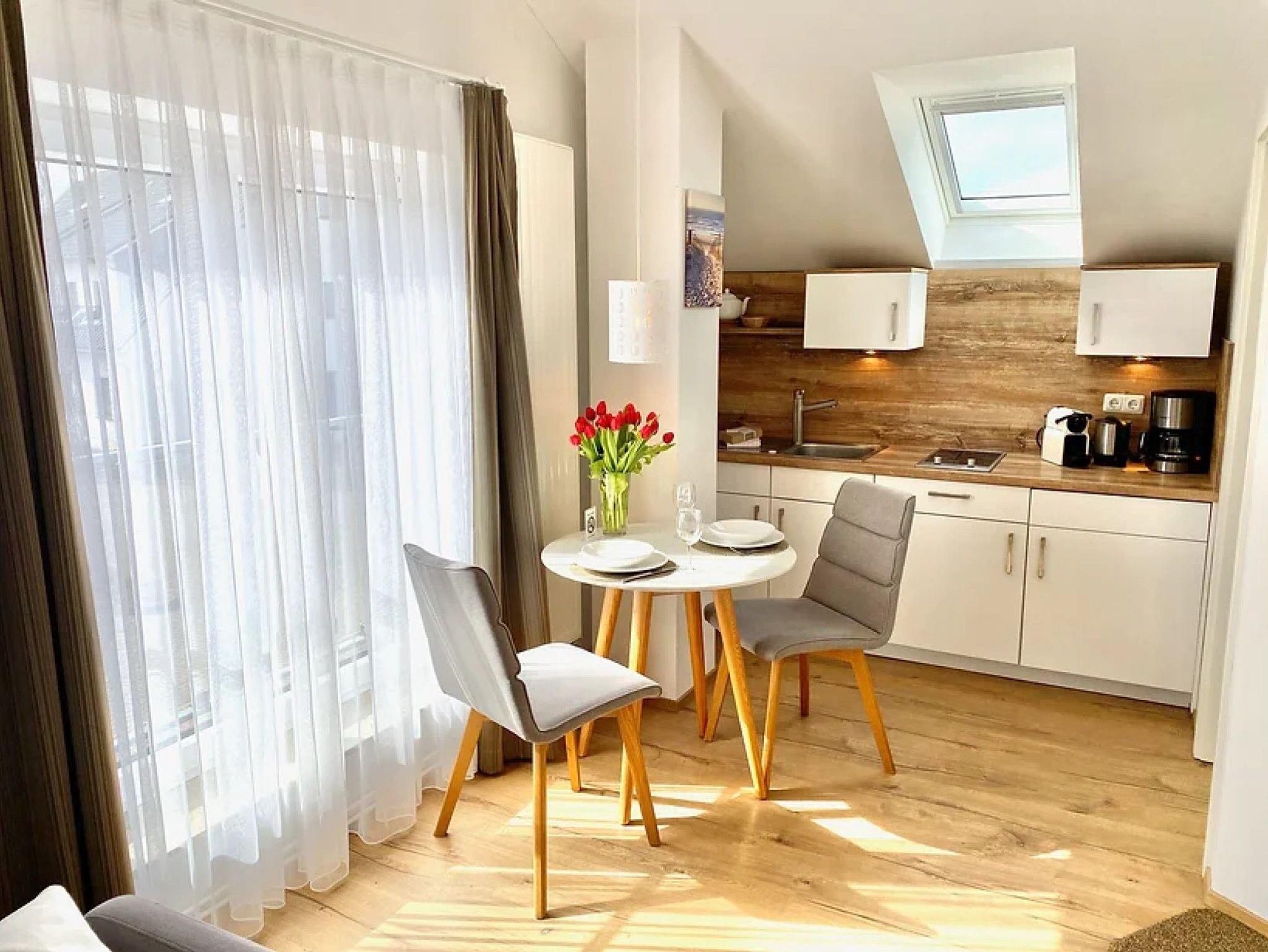 Entspannen Sie im mönchgut living & spa Ferienstudio STANDARD mit Miniküche und Saunalandschaft in Gager.
